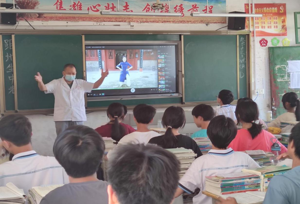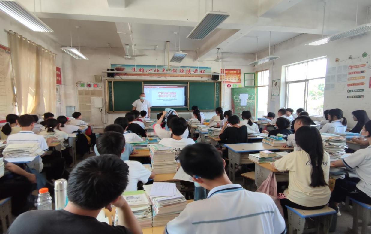 5月21日是“世界脊柱健康日”。镇岗乡卫生院医务人员走进镇岗初中举办“守护脊柱健康·中医药在行动”主题健康讲座,讲解脊柱有关知识,提高学生对脊柱侧弯的认知度,并现场和孩子们一起学习中医传统保健功五禽戏。