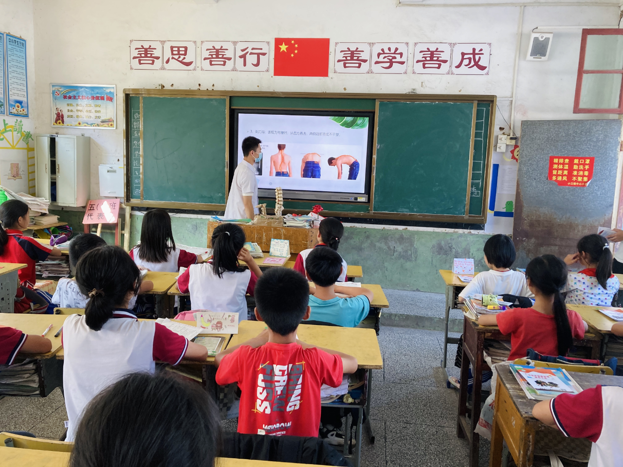 为充分发挥中医药在青少年脊柱侧弯防治中的积极作用,引导儿童青少年养成良好生活习惯,普及脊柱健康知识,增强青少年预防意识,培育青少年健康素养,5月26日小江镇中心卫生院走进小江镇中心小学五(2)班开展了“守护脊柱健康 中医药在行动”中医药文化主题日活动。