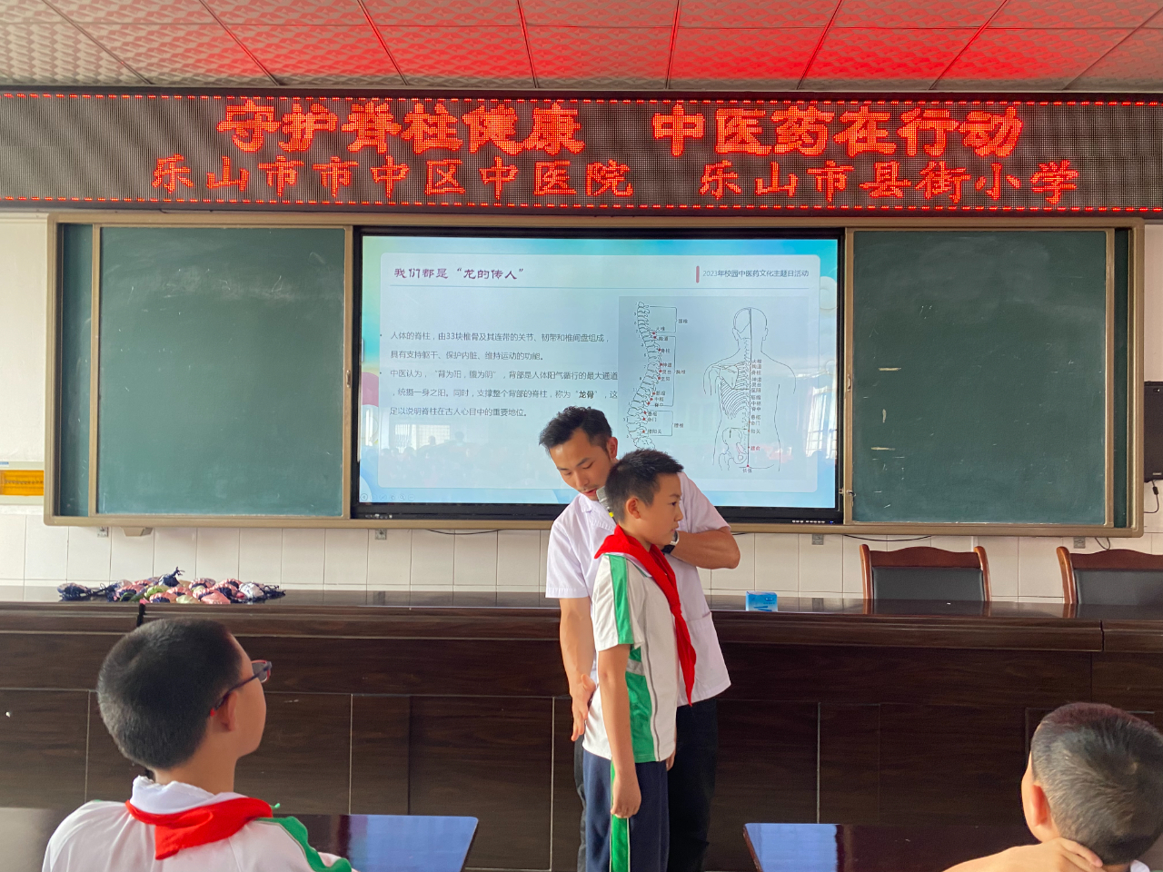为充分发挥中医药在青少年脊柱侧弯防治中的积极作用,不断培育青少年文化自信和健康素养,促进中医药文化传承和创新发展,5月24日下午,乐山市市中区中医医院走进县街小学开展了以“守护脊柱健康 中医药在行动”为主题的活动。