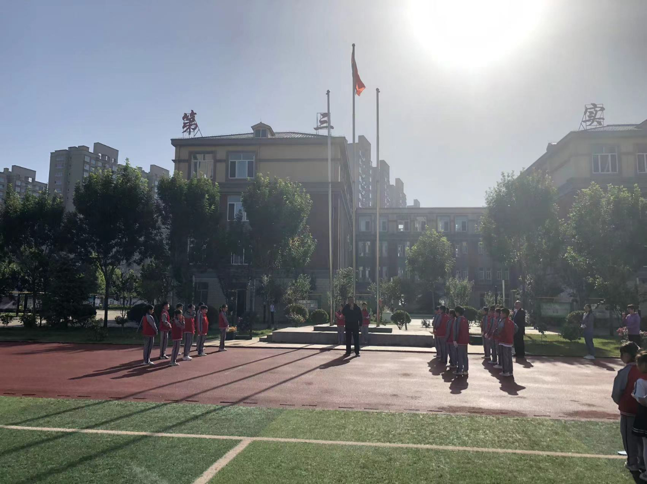 1、组织主题升旗仪式:全校师生共4600余人参与。