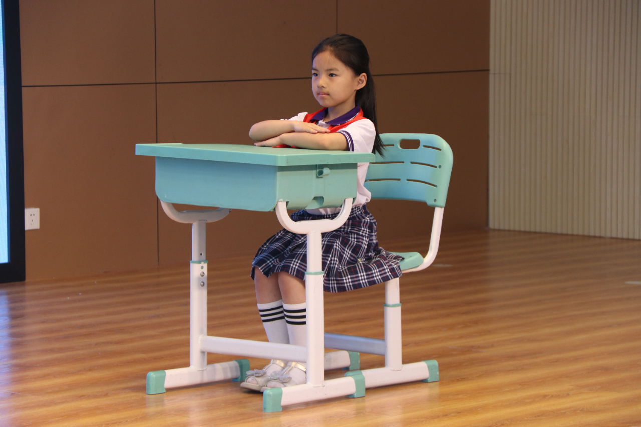 直观的图片总结出简短易记的口诀如:坐如钟、站如松、走如风、卧如弓等,为了增强学生的记忆,大家一起大声朗读,帮助同学们从姿势习惯、饮食等方面养成良好的姿势习惯。