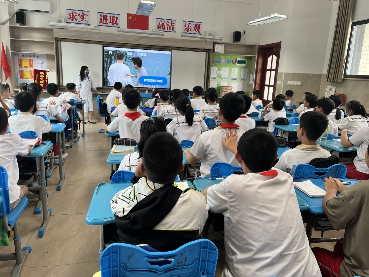 本次活动主讲人是开发区七里湖街道社区卫生服务中心康福妹医师。在讲座中,康医生以守护脊柱健康为主题,通过漫画、动图等生动有趣的方式,带领孩子们认识了脊柱的真实样子及脊柱侧弯的形态,为孩子们以后的坐姿、站姿、负重等方面提供了前瞻性的指导建议。