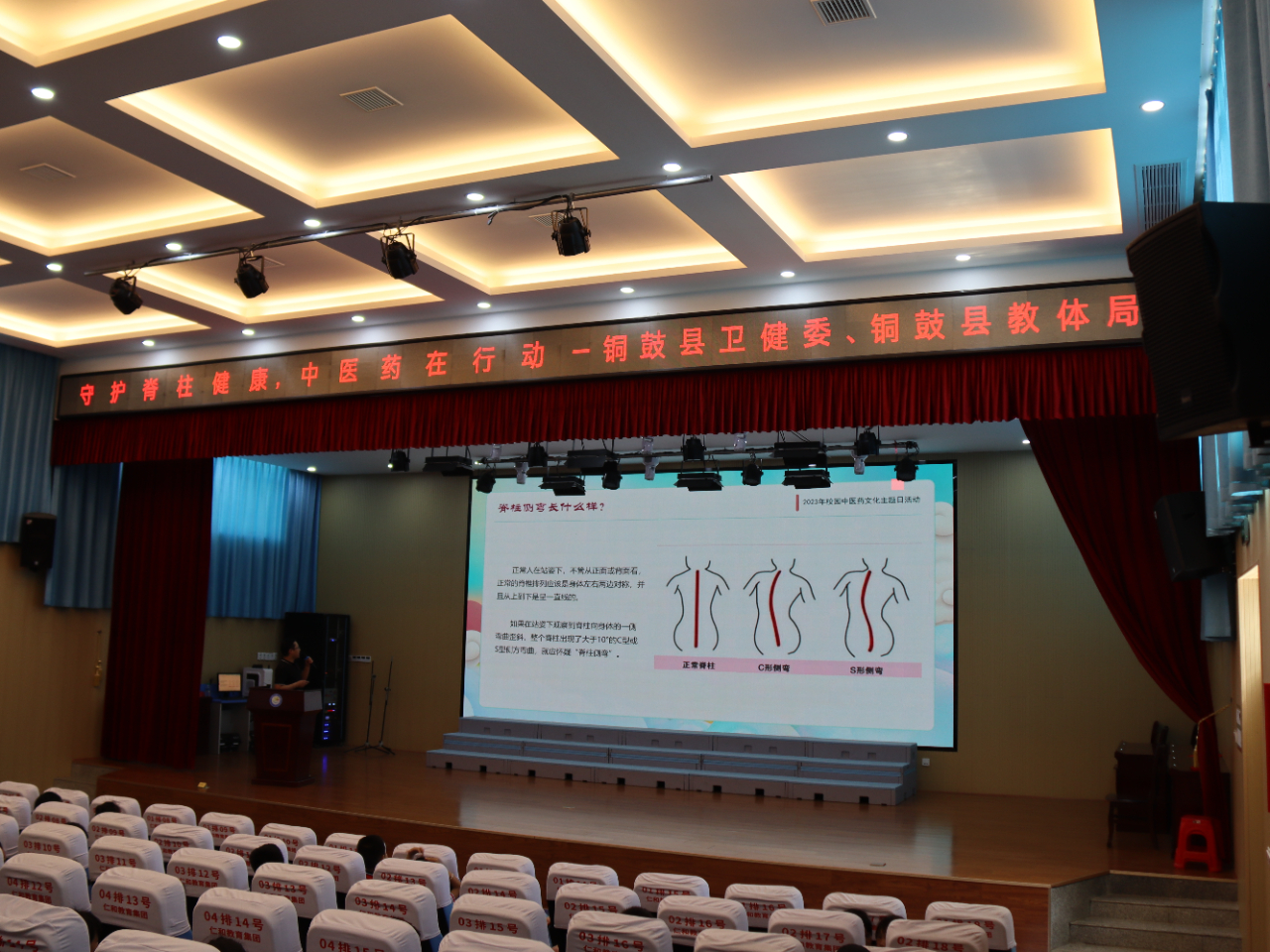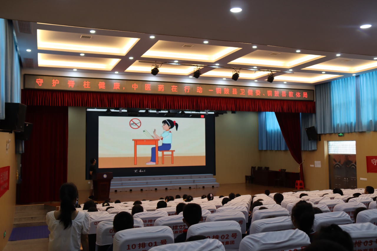 江西省宜春市铜鼓县卫健委积极响应国家中医药管理局号召,深入学校开展守护脊柱健康、中医药在行动活动。5月29日宜春市铜鼓县卫健委组织中医院医生走进铜鼓县第一小学开展主题活动,学校领导高度重视,立即组织好学生参与此次活动。在炎炎夏日下,220余名学生在老师的组织下有条不紊的进入到多媒体教室,在主持的介绍下,铜鼓县中医院鄢江文医生开始了今天的讲课。