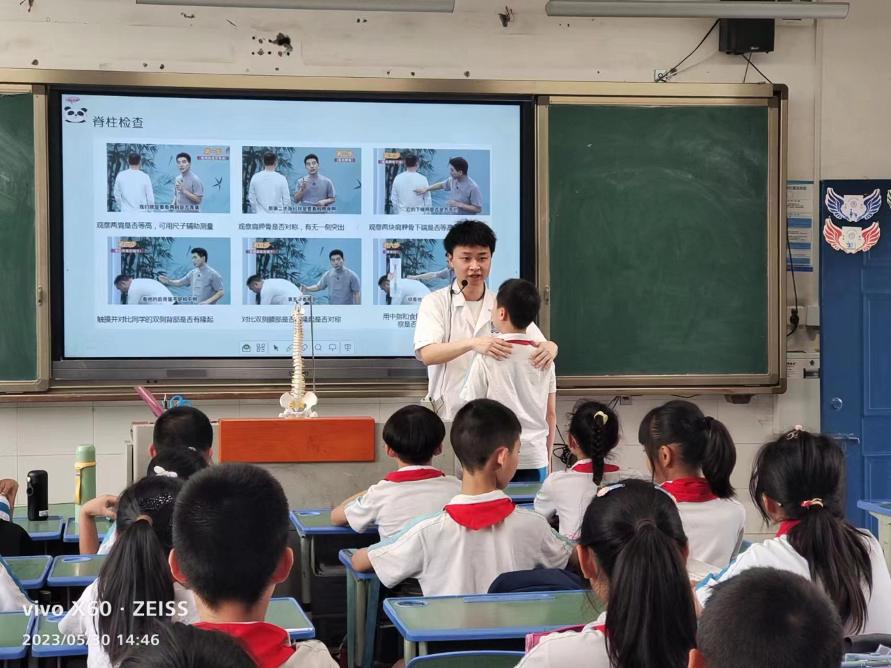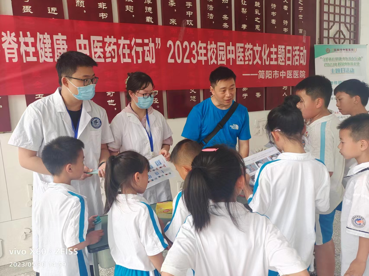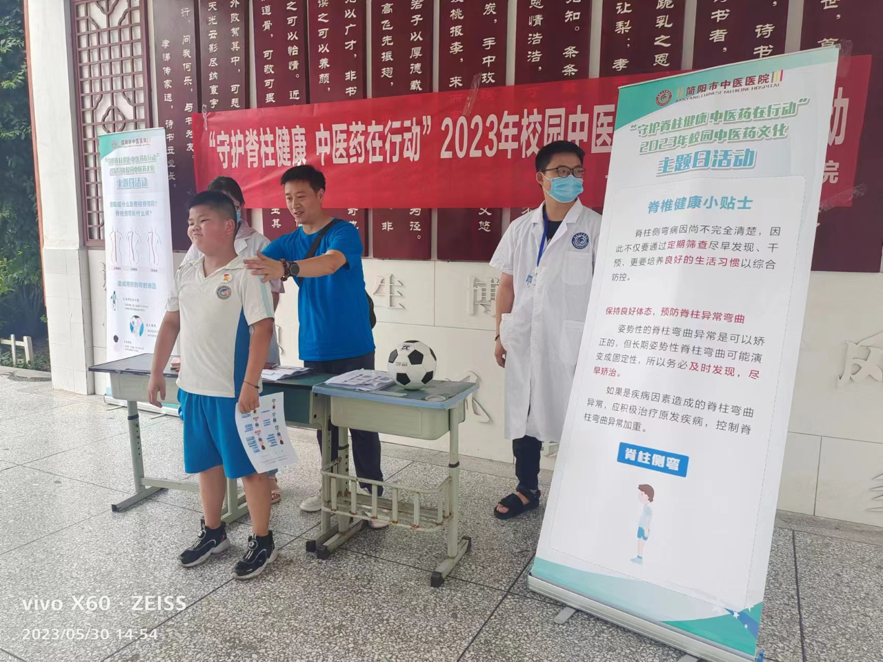 继肥胖、近视后,脊柱侧弯已成为危害我国儿童青少年健康的第三大“杀手”。为充分发挥中医药在青少年脊柱侧弯防治中的积极作用,引导儿童青少年养成良好生活习惯,5月30日,简阳市中医医院与射洪坝一小联合开展“守护脊柱健康 中医药在行动”2023年校园中医药文化主题日活动,共计200余名师生参加。