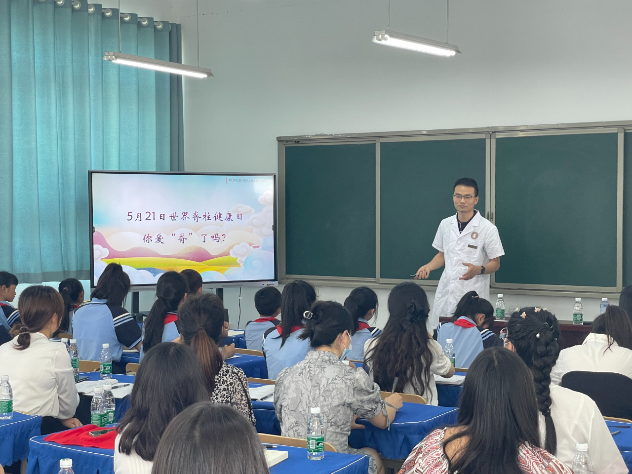 为传承中医药文化,培育青少年健康素养,增强青少年脊柱健康防控意识,充分发挥中医药在青少年脊柱侧弯防治中的积极作用,5月29日上午,成都市新津区中医医院联合成都市新津区普兴小学开展 " 守护脊柱健康 中医药在行动 " 中医药文化主题日活动。通过青少年脊柱健康知识讲座、五禽戏现场教学等形式,不断培育青少年文化自信和健康素养。