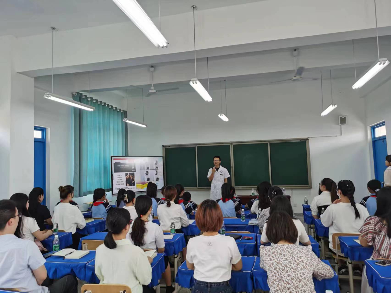 活动中,中医院骨伤科王礼老师通过形象的图片、有趣的动画视频、人体骨骼模型等向同学们介绍了脊柱的作用及常见的脊柱相关疾病。接着引导同学们认识什么是脊柱侧弯、造成脊柱侧弯的原因和危害。通过现场互动,通过六步筛查法,辨别是否有脊柱侧弯,同时从日常站姿、坐姿、卧姿、锻炼及饮食等方面讲解了防治脊柱侧弯的科普知识,整个讲解过程深入浅出、通俗易懂。