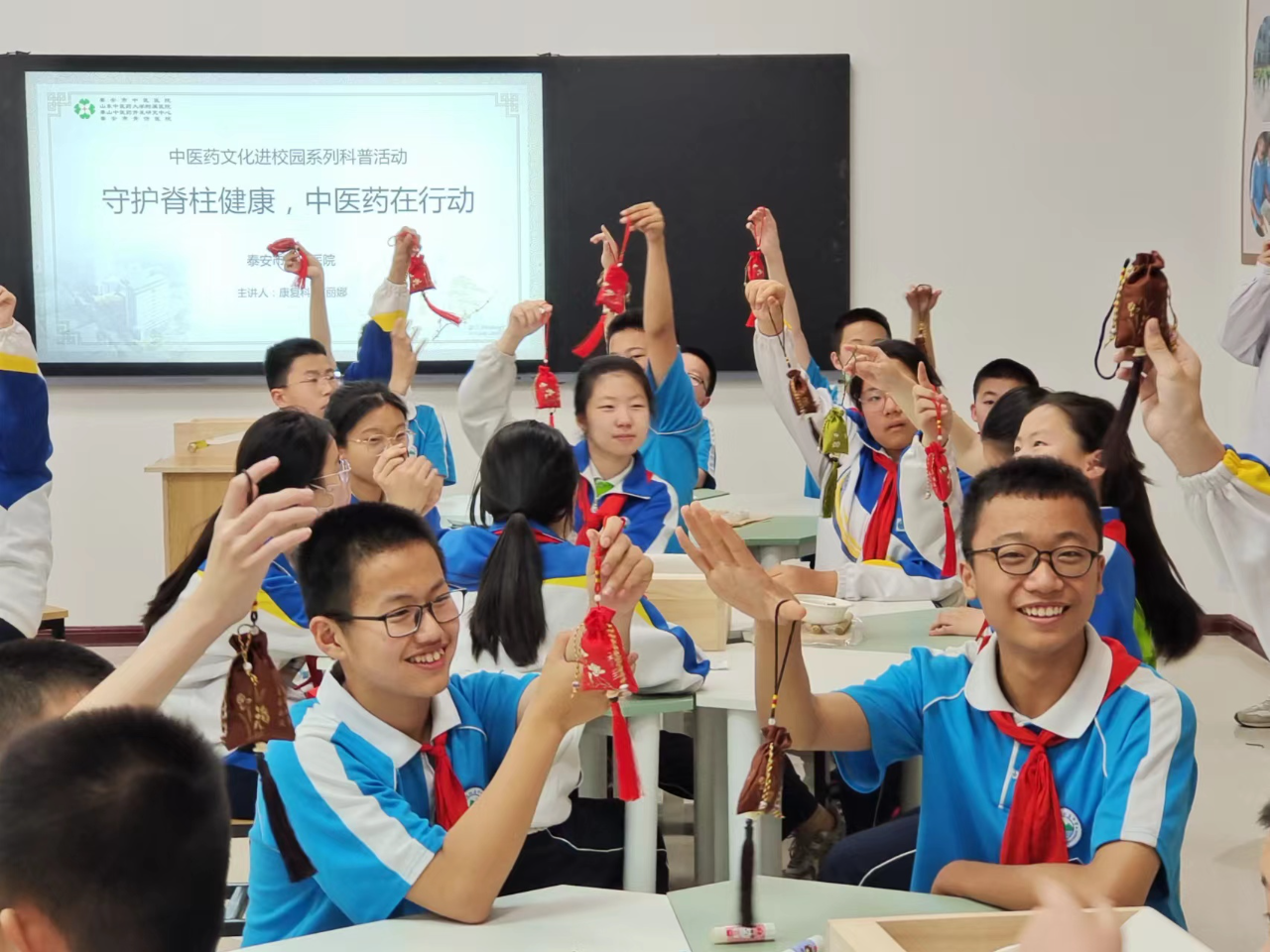 作为山东省中医药文化进校园试点学校,泰山学院附属中学将继续把中医药文化教育贯穿始终,开展丰富多彩的中医药文化校本课程和实践活动,让中华优秀传统文化浸润心田、滋养成长。