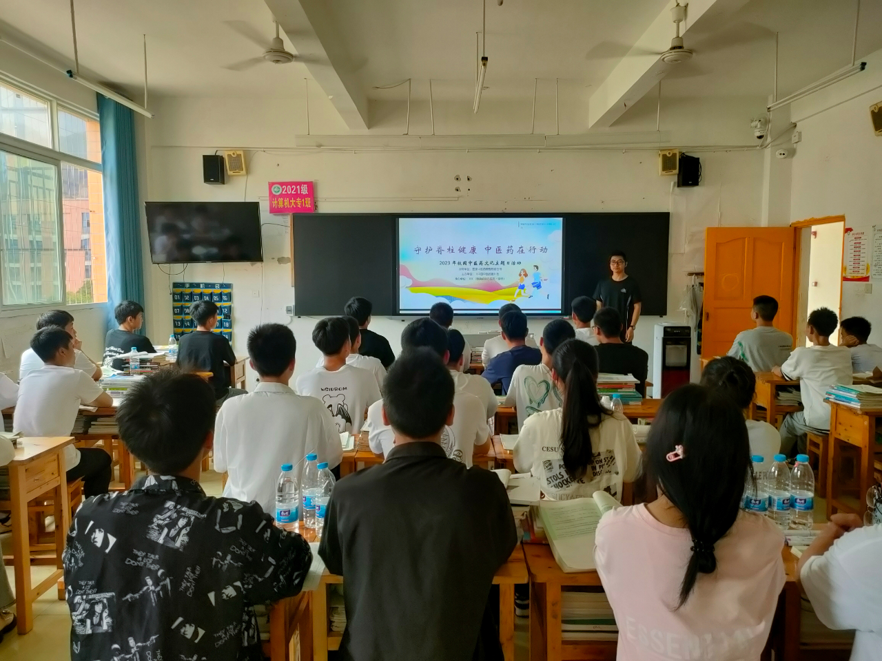 5月24日,各班开展“守护脊柱健康 中医药在行动”主题活动,围绕“从脊开始”——了解脊柱知识、“触手可脊”——自我筛查脊柱健康状态、“大显身手”——习练中医药传统养生功法这三方面普及脊柱健康知识,让学生掌握保护脊柱健康的基本方法,养成健康生活方式。