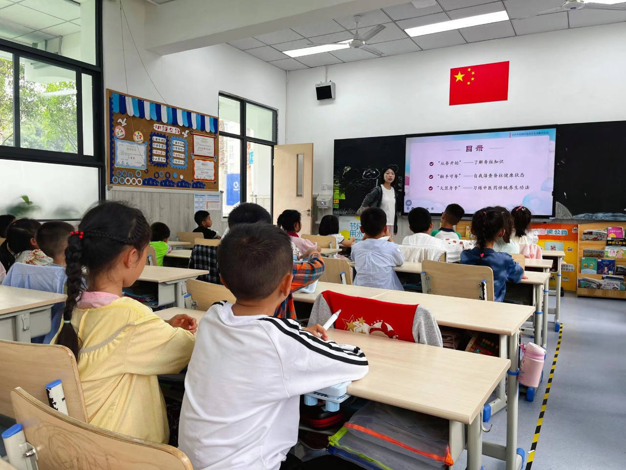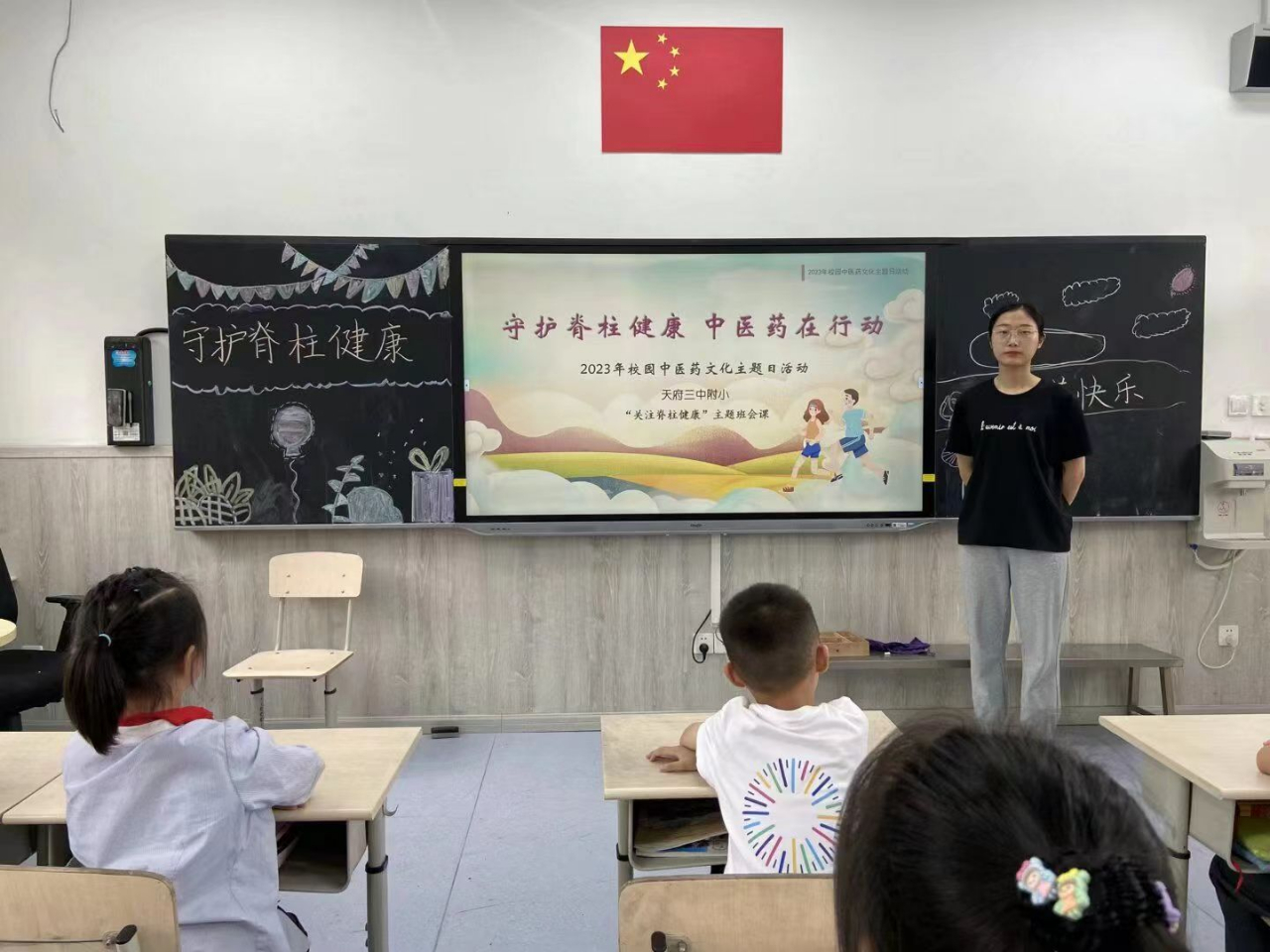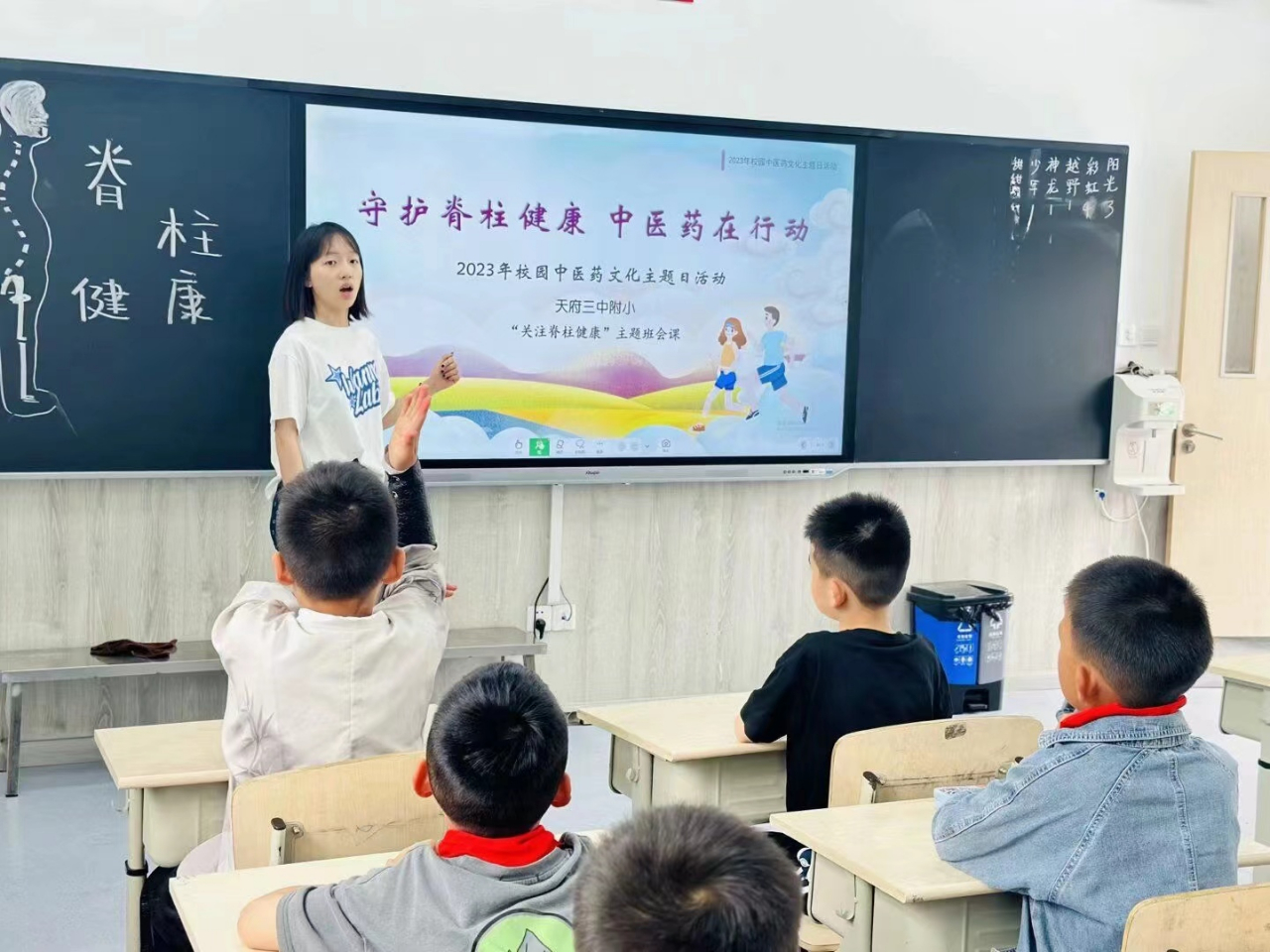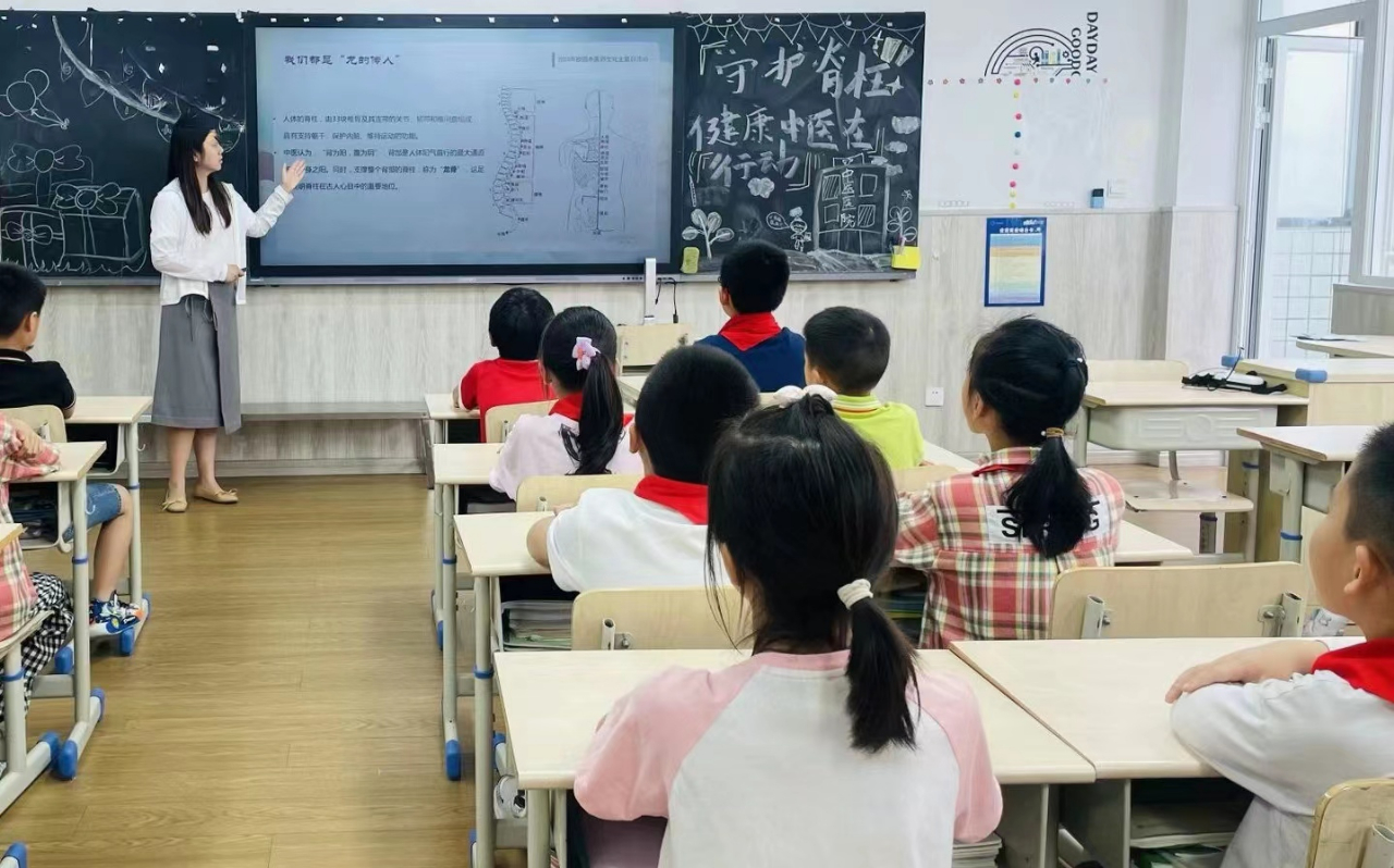 全校班级利用班会课时间开展了“守护脊柱健康,中医药在行动”主题班会课活动。
