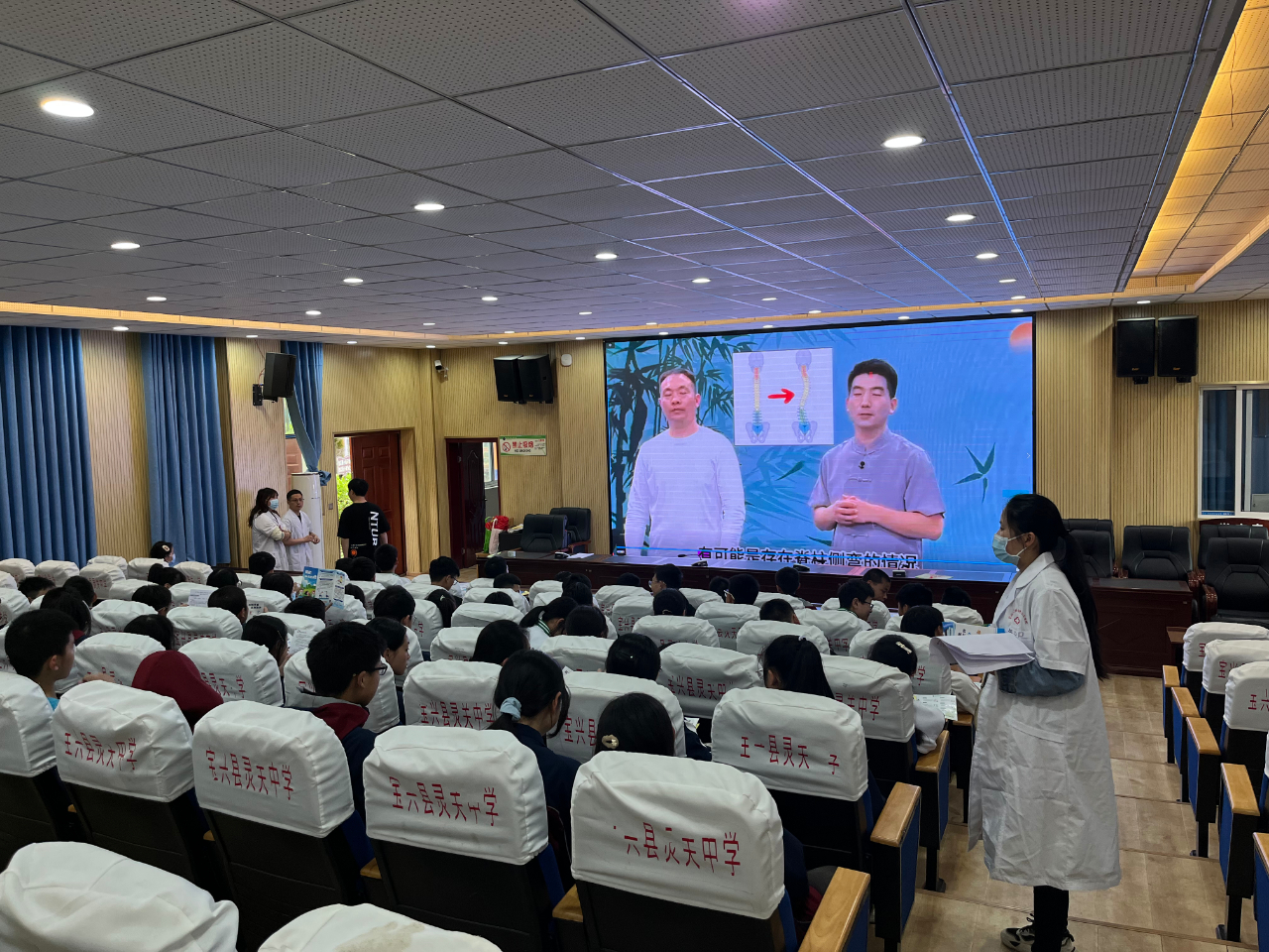 活动采取播放中医药科普短片和专家视频,展示不良坐姿图片,引导讨论脊柱侧弯的原因,脊柱健康与视力的关系等,总结脊柱侧弯的预防措施,引导学生在生活、习惯、日常饮食等方面养成关注脊柱健康的好习惯。中医药人员还现场指导学生脊柱健康自测,练习中医药传统养生功法,采用抽问的形式与学生互动,增加学生的参与性,并布置学生向家长介绍脊柱健康自测情况,和家长一起练习中医药养生锻炼方法。