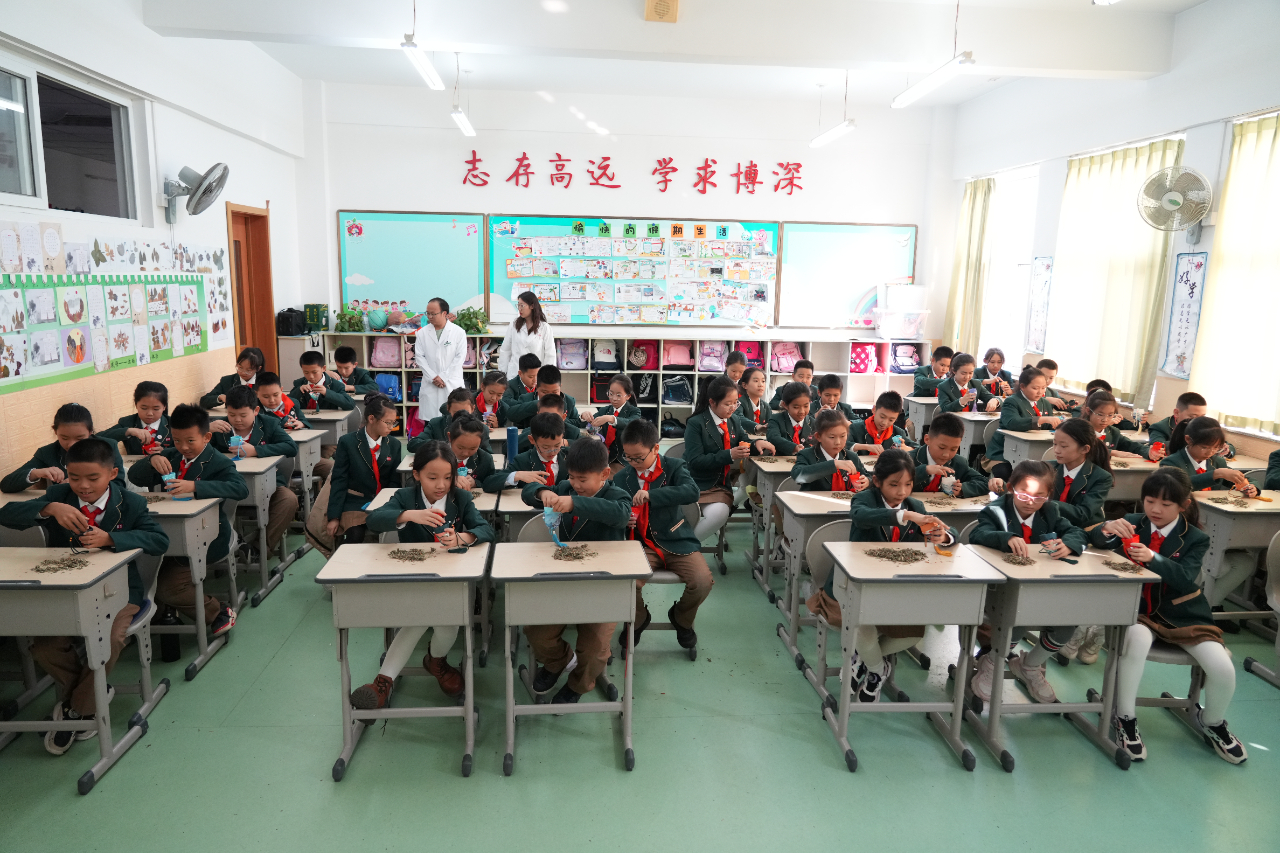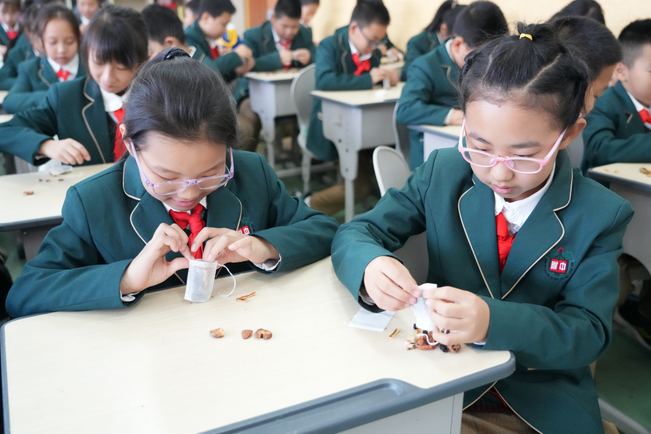 为了让小学生亲身接触、切身感受中医药文化,增加中医药的参与度,10月23日,在重阳节当日,吉林省长春中医药大学附属医院走进东北师范大学附属实验学校小学部,将重阳节和中医药传统文化送进课堂,该校五年级组360余名学生参加活动。