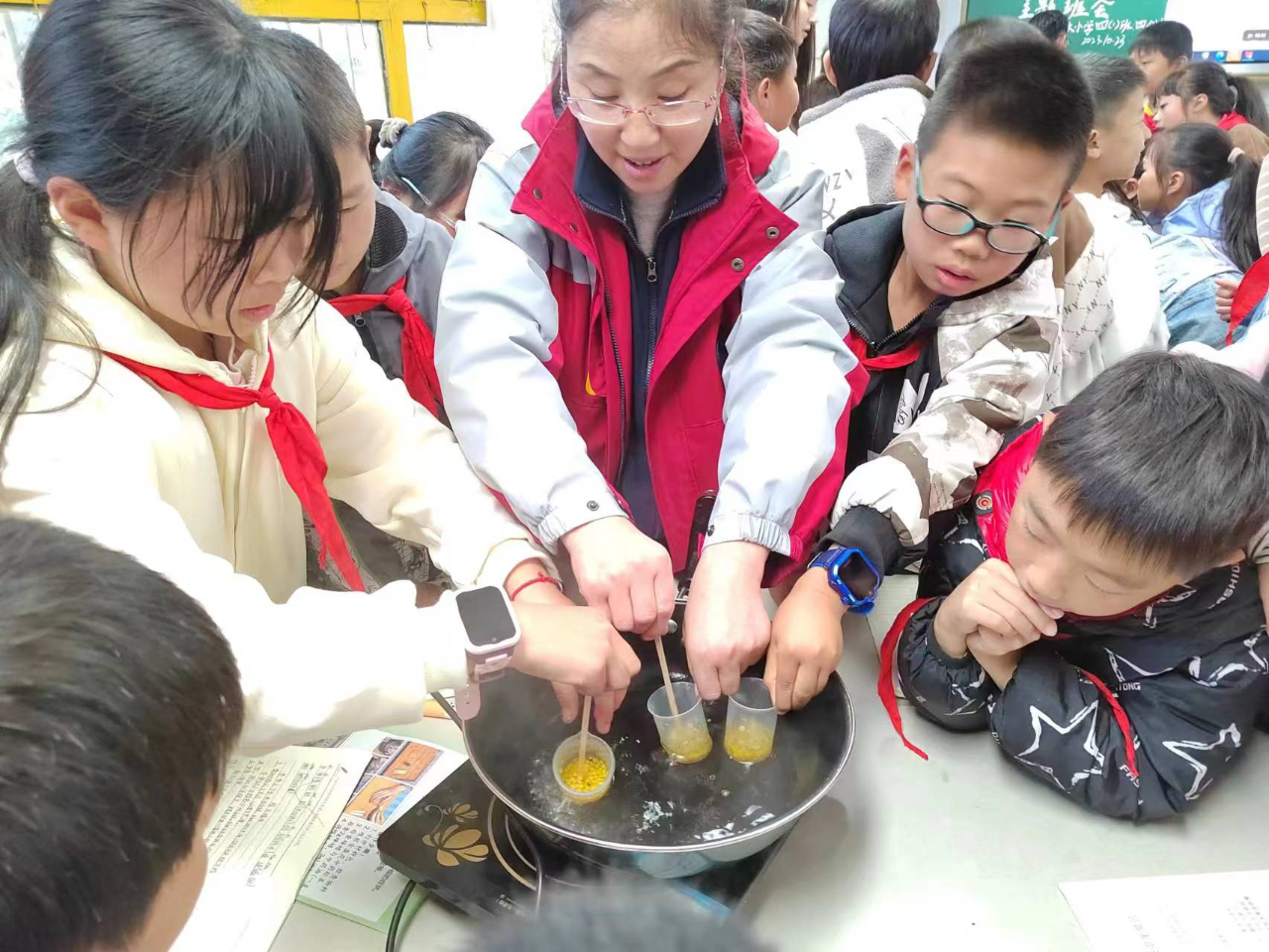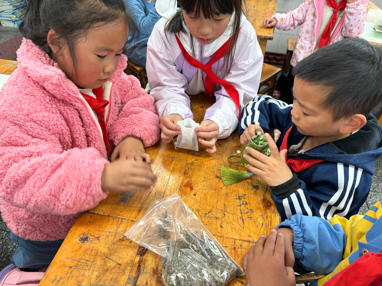 孩子们在教师现场指导下,积极参与了课堂互动体验,动手制作金盏菊护手霜、香囊、艾条、润唇膏。 孩子们集中注意力、细心处理细节,耐心完成每一步骤。亲自动手体验,激发了孩子们的创造力,培养了专注力和耐心。