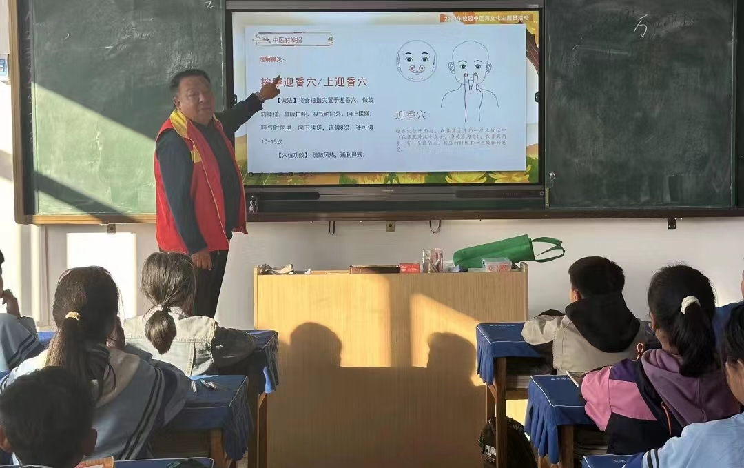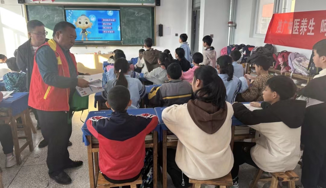 为了集中展示中医药悠久的历史、深厚的文化和良好的疗效,引进广大学生走进中医药、认识中医药,了解和使用中医药,并提供正确、安全、科学的中医药知识,在2023年10月20日重阳节到来之际,河南省栾川县庙子镇中心卫生院公卫科在庙子镇中心小学四二班教室集中宣传中医药知识。