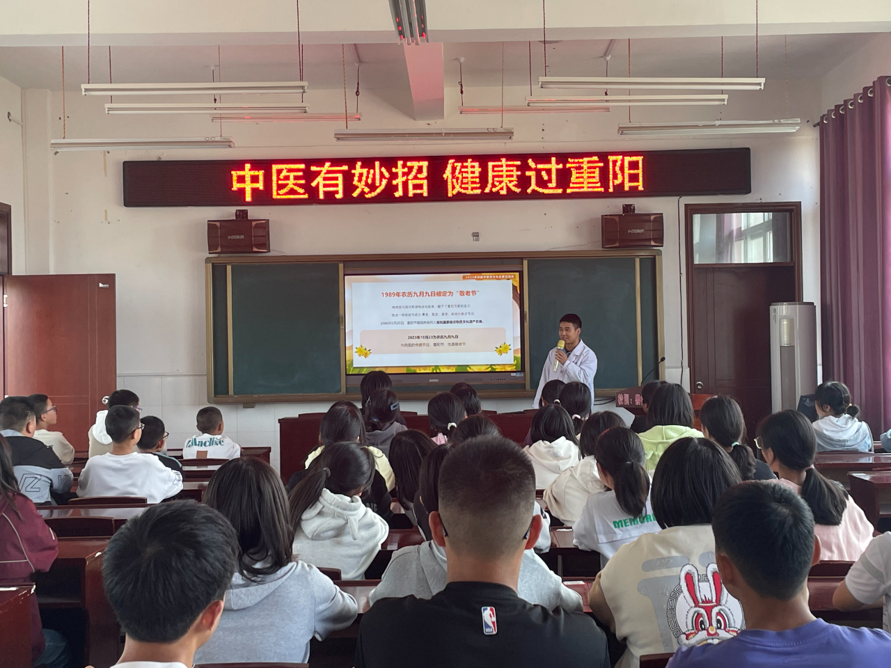 金秋十月爽,九九话重阳。为了弘扬传统美德,传承中医药文化,激发孩子们尊老、敬老、爱老的情感,10月24日,湖北省崔家坝镇中心卫生院前往镇民族中学开展了以“中医有妙招 健康过重阳”为主题的校园中医药文化活动。