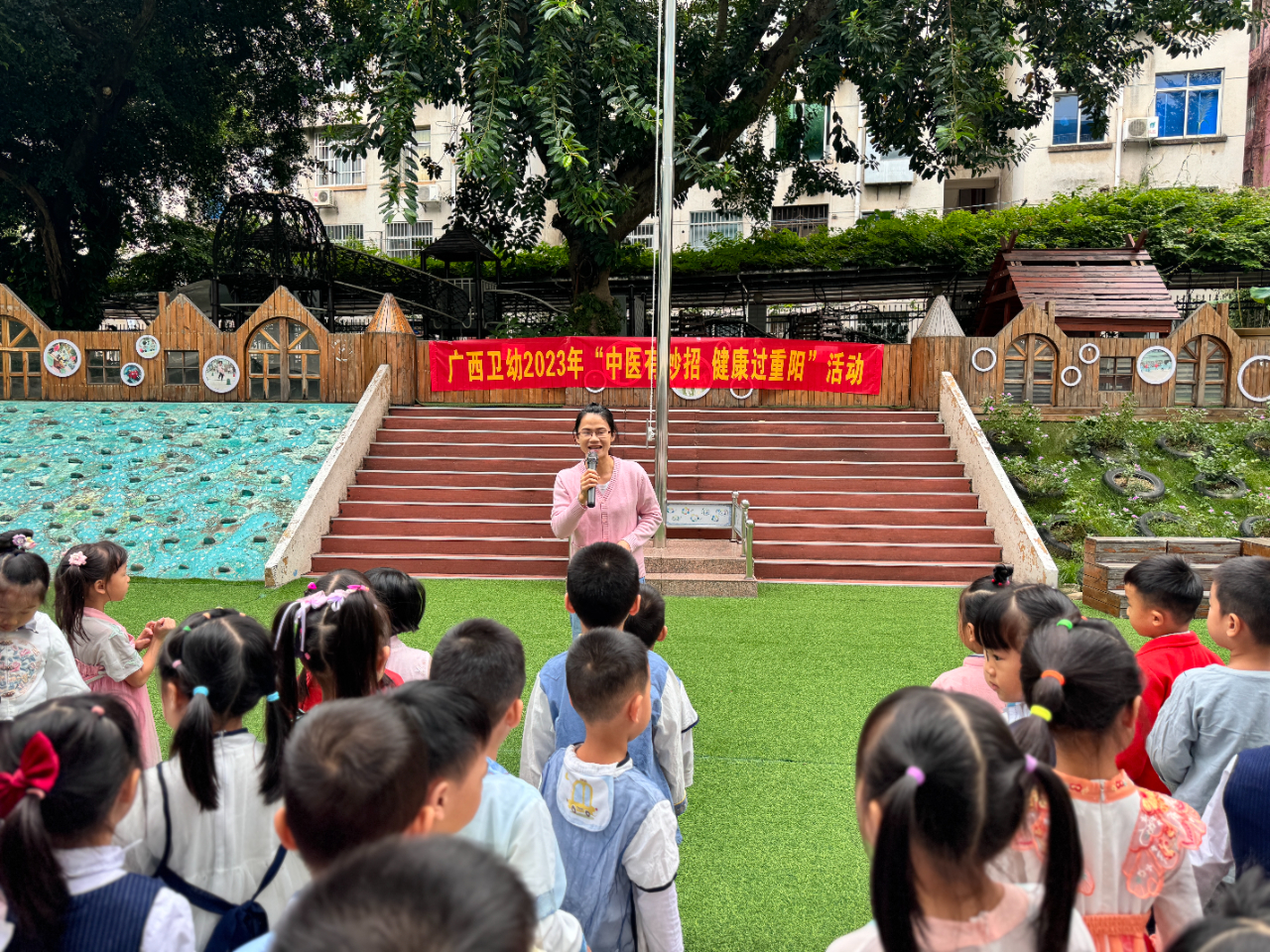 2023年10月23日是农历九月初九重阳节。重阳节是中华民族的重要传统节日。为贯彻落实《中医药文化传播行动实施方案(2021—2025年)》和《“十四五”中医药文化弘扬工程实施方案》中关于“丰富中小学中医药文化教育校园活动”的要求,帮助幼儿了解重阳节的起源、传统习俗等知识,弘扬重阳敬老的中华孝道文化及中医药敬老养生理念,学习和运用有针对性的中医药小妙招,提升中医药的广泛运用,广西卫生健康委员会幼儿园开展了丰富多彩的重阳节活动,让孩子们度过了一个丰富多彩的重阳节。