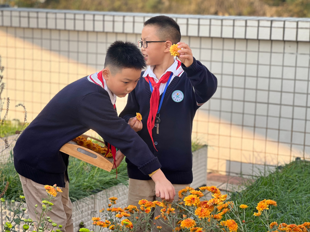 2023年重阳节来临之际,在湖北省十堰武当中医医疗集团(十堰市中医医院)联合十堰市重庆路小学共同打造的中草药劳动基地——百草园里迎来了大丰收,师生们亲手采摘了成熟的青苞菊、孔雀菊,“这两种菊花有具有清肝明目、益肝补阴、美容养颜、润肠通便之特性,能软化血管、抗菌消炎、改善睡眠质量,对冠心病、高血脂、糖尿病有着特殊的疗效。”大内科、风湿科护士长何菊林在中医养生课堂上跟学生们娓娓讲道,她还介绍了其他8种可以喝的菊花,现场泡制菊花茶饮,让学生们用舌尖感受既可欣赏又可药用的菊花。