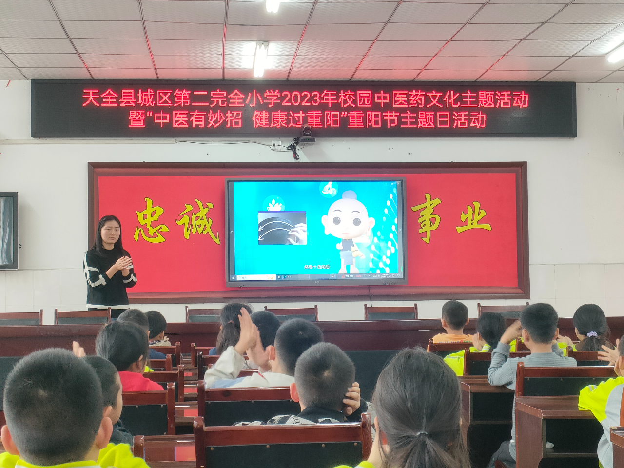 为贯彻落实《中医药文化传播行动实施方案(2021-2025年)》和《“十四五”中医药文化弘扬工程实施方案》中关于“丰富中小学中医药文化教育校园活动”的要求,2023年10月23日四川省天全县中医医院、天全县城区第二完全小学共同举行了2023年校园中医药文化主题活动暨“中医有妙招 健康过重阳”重阳节主题日活动。