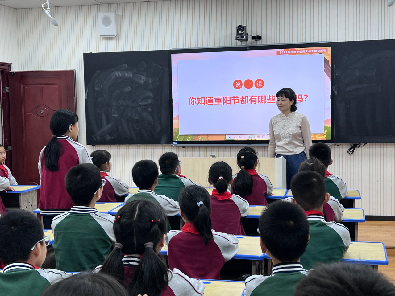2023年10月27日下午,江西省南昌市东湖区百花洲小学四年三班44名学生在班主任余莉莉老师的组织下上了一节《中医有妙招 健康过重阳》主题班会,从九九重阳节、中医有妙招、养生正当时、敬老有妙招四个主题开展活动,同学们积极参与,兴趣盎然。此活动为由国家中医药管理局综合司指导、《中国中医药报》社有限公司主办的“中医有妙招 健康过重阳”2023年校园中医药文化主题活动·重阳节主题日活动,课堂录像将组织全校师生观看,共同参与活动。