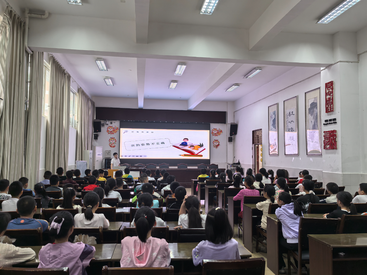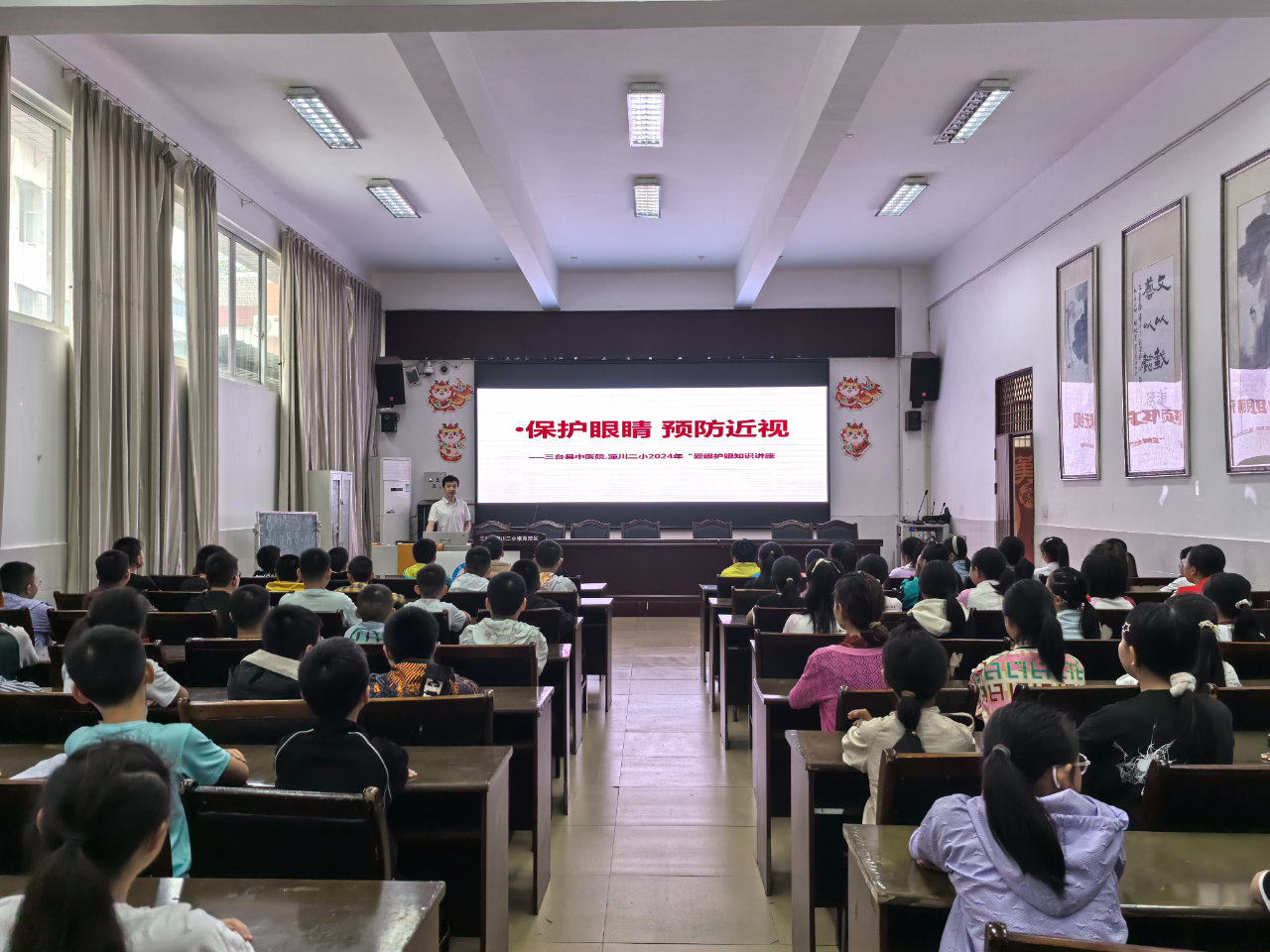 为提高学生们爱眼护眼知识,该院眼科主治中医师李勇还讲授了“科学用眼、爱护眼睛”小妙招。李勇从如何保护眼睛、近视的原因、保护眼睛“六不要”、生活中注意事项等四个方面进行了耐心的讲述。并要求学生们平时要爱眼、护眼,认真做好眼保健操。