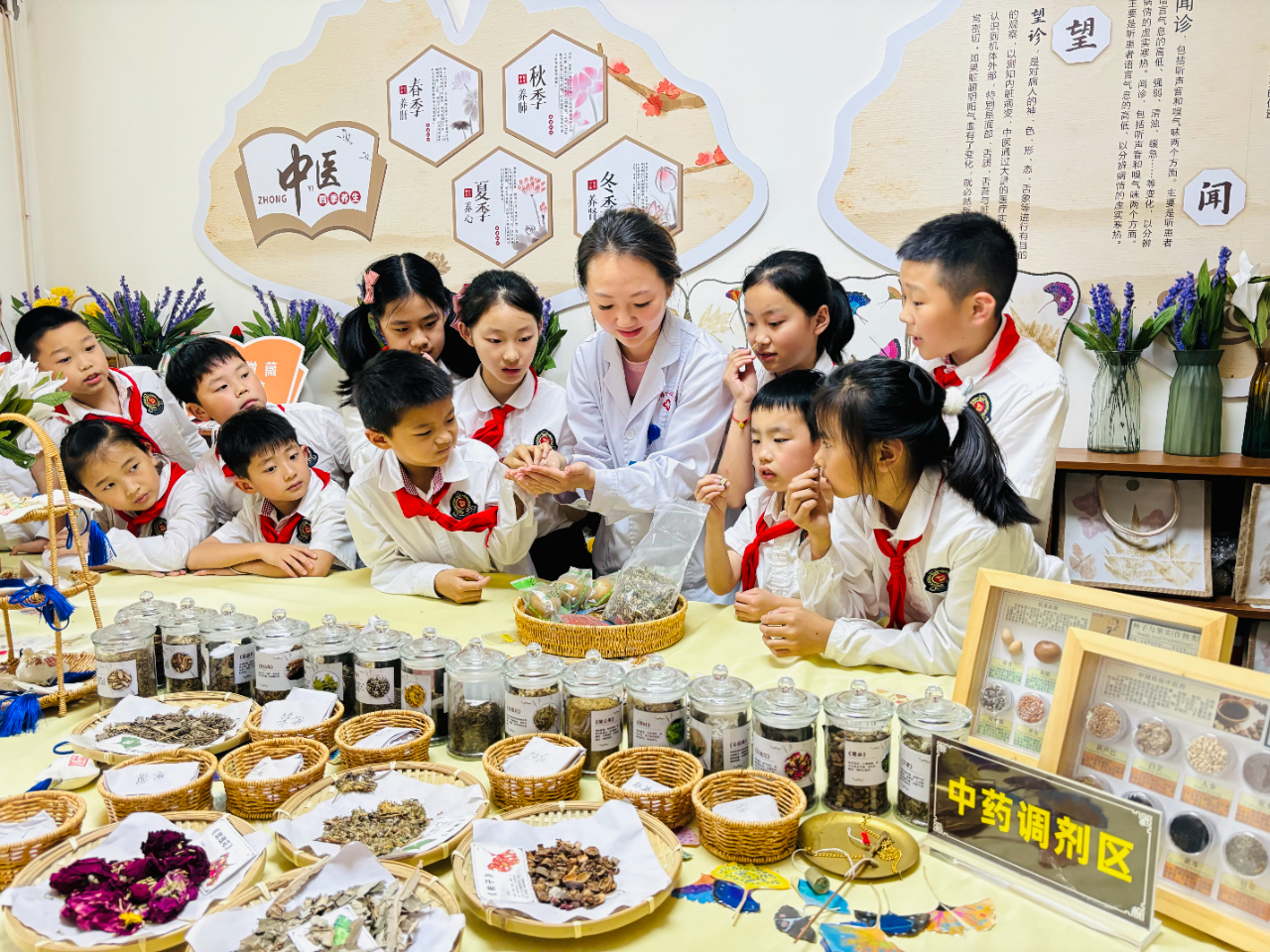 同时,唐兴勤还针对小学生的体重管理问题进行了深入讲解。她强调了保持健康体重的重要性,并介绍了如何通过中医药养生方法来实现体重管理的目标。卫生院孙医生带孩子们到微薇博物馆进行中医职业体验,开展中医药知识讲解,学生们听得津津有味,纷纷表示要将所学知识运用到日常生活中,养成健康的生活习惯,积极践行健康的生活方式。