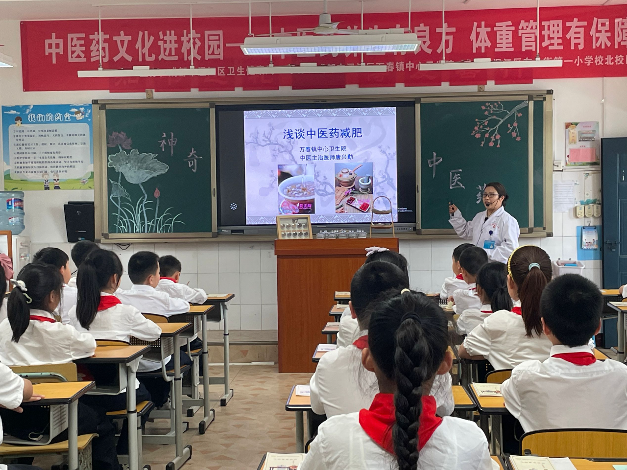 5月10日下午,四川省成都市万春镇中心卫生院的医生走进东大街第一小学校北校区中医药文化社团,开展了一场以“中医药养生有良方 体重管理有保障”为主题的预防肥胖活动,旨在向小学生们普及中医药养生知识,帮助他们树立正确的健康观念,有效预防肥胖问题。