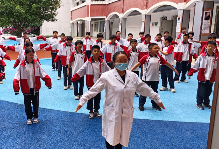 最后,刘春春与师生们一起进行了经络拍打操练习,让师生们在亲身体验中国传统文化魅力的同时,达到疏通经络、运行气血、改善机体的目的。