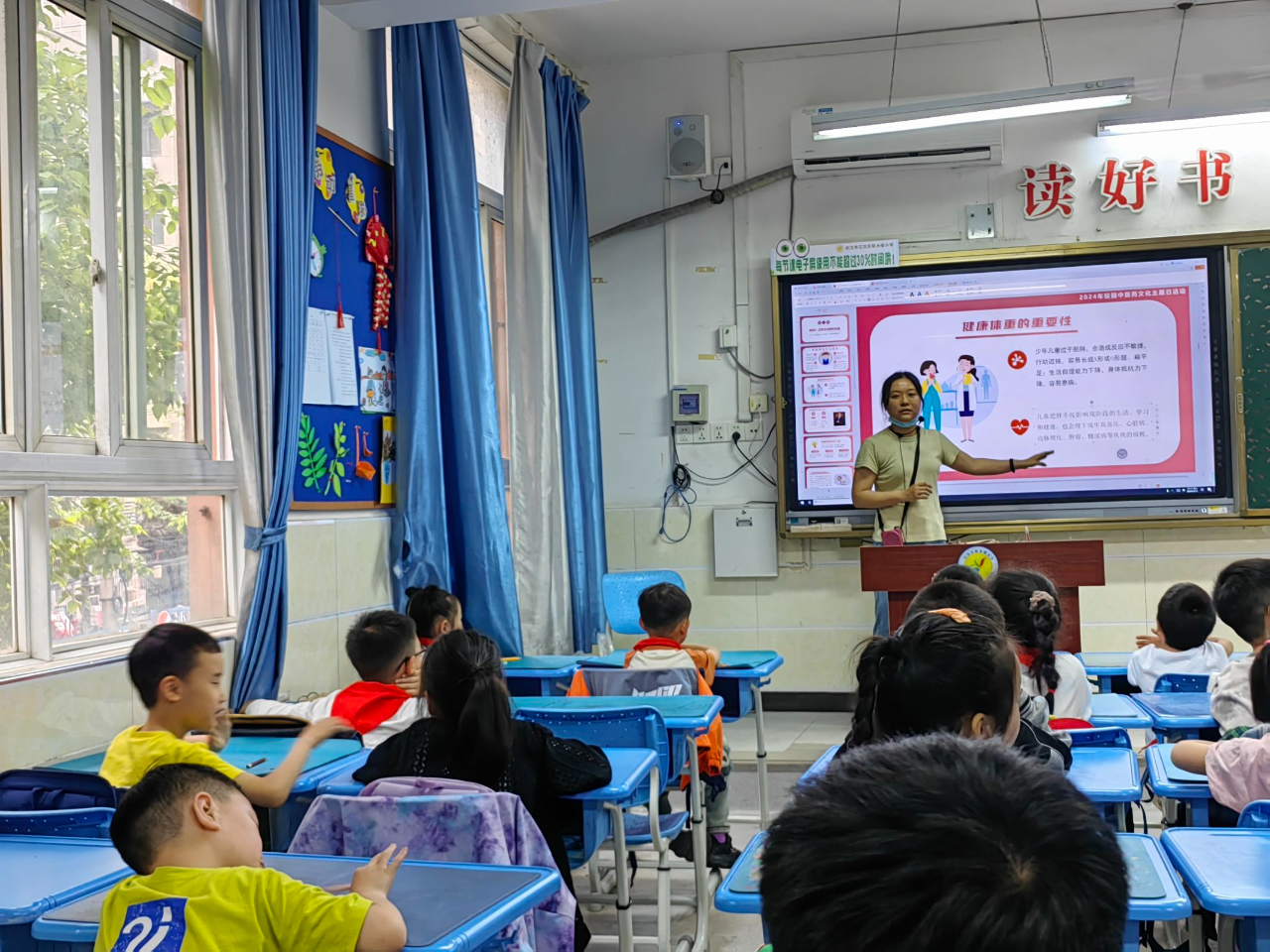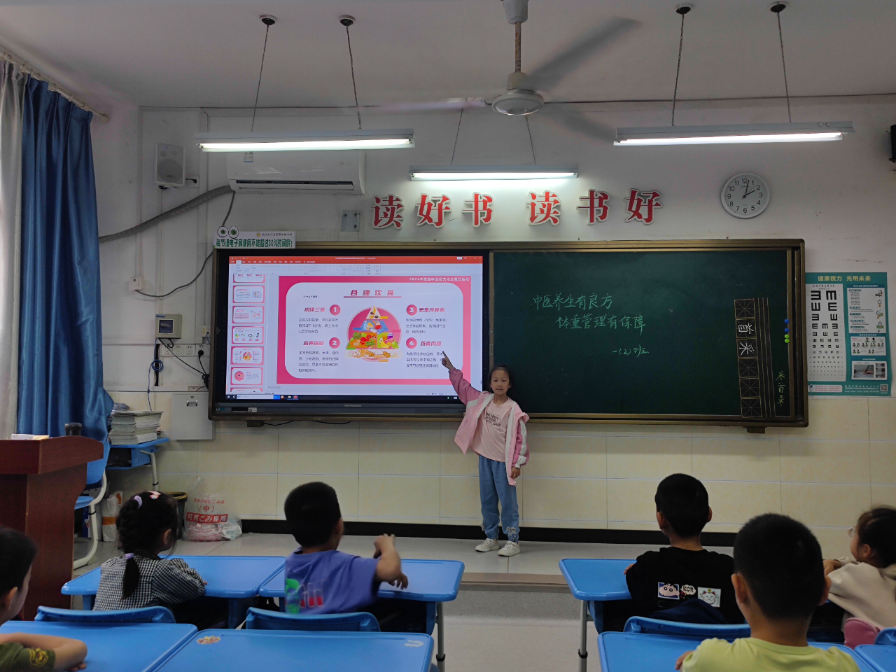 5月11日,湖北省武汉市取水楼小学利用班会课,开展了中医药文化进校园主题活动。老师首先由世界防治肥胖日引出活动主题,带领同学们自由讨论,不同体质的体重管理有什么不一样的方法,分小组制定“我是养生小达人”健康计划,包含每日的饮食起居安排,鼓励同学们根据计划进行实践。然后带领同学们一起学习健脾保健通腑的“经络拍打操”,邀请同学们参加“21 天中医药健康生活挑战”线上打卡挑战。湖北省武汉市取水楼小学提倡学生和家长之间相互监督、鼓励,共同进步,形成良好的家校互动的健康成长氛围。