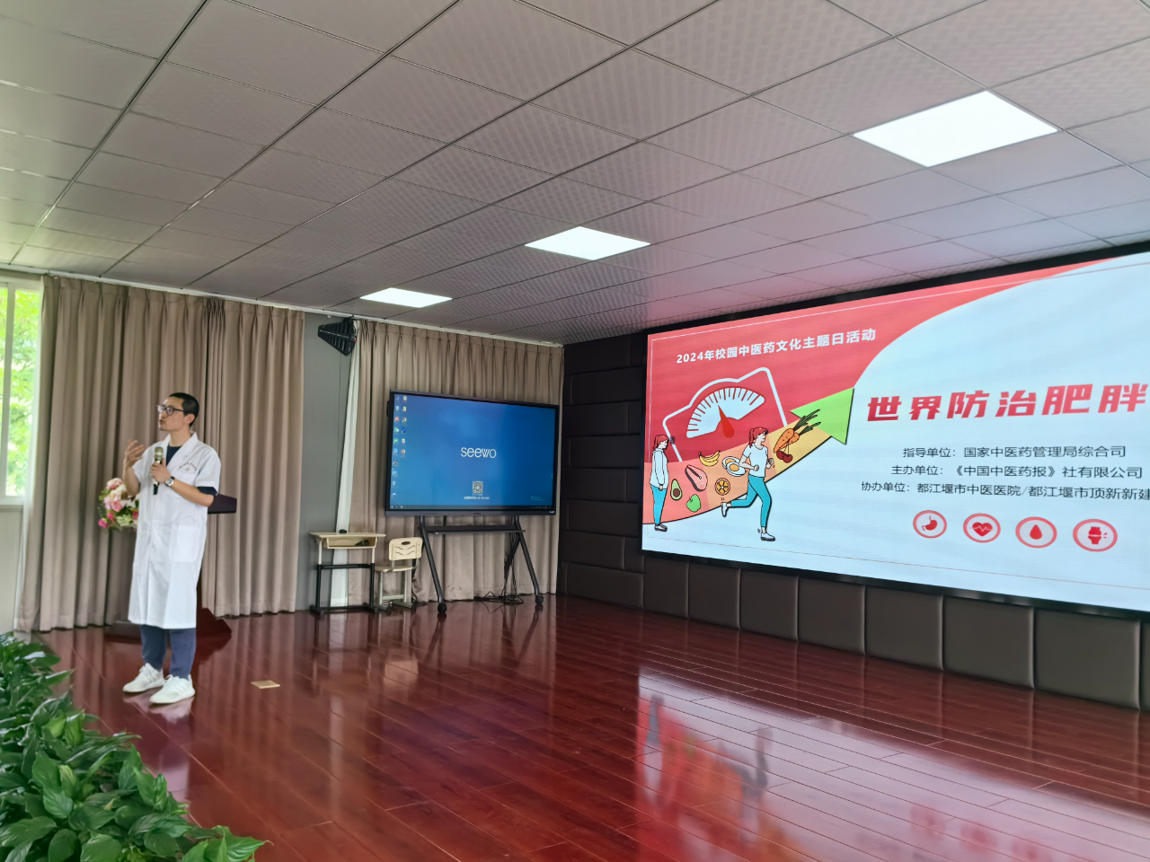 活动现场,都江堰市中医医院针灸科副主任何伟通过播放视频及演示PPT等方式,为同学们详细讲解了青少年肥胖的健康风险、健康体重的定义,常见的体重管理误区、体重过低或超重的原因和危害。