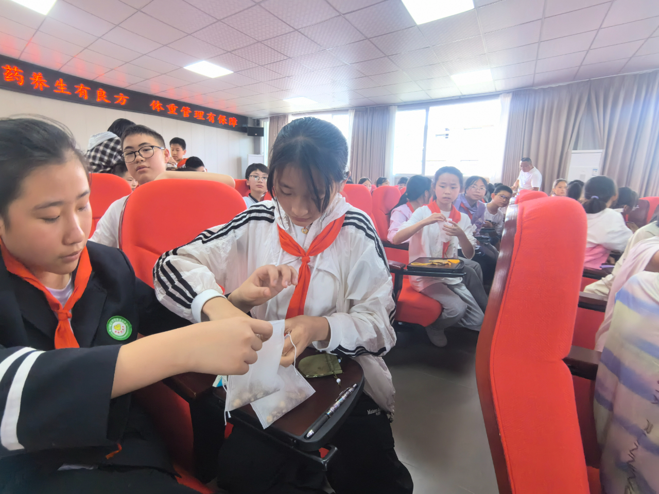 此外,还带领同学们一起练习健脾保健通腑的“经络拍打操”,认识石菖蒲、薄荷、白豆蔻等中药材以及手工制作中药香囊。在欢声笑语中,同学们不仅感受到了中医药的奇妙之处,还激发了对中医药的浓厚兴趣。