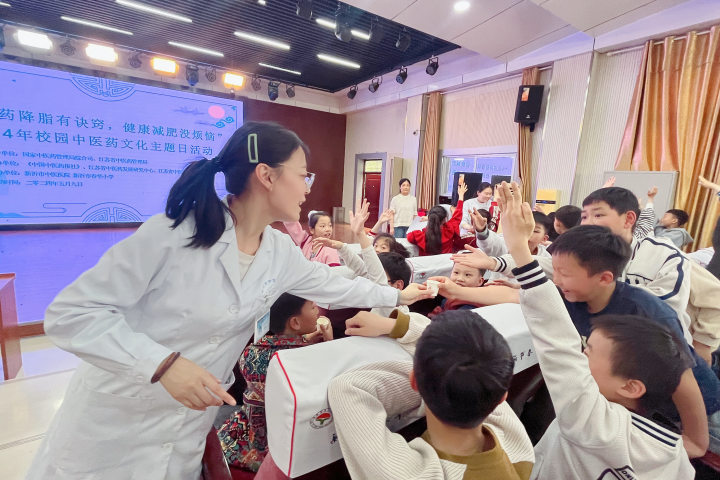 为推动青少年肥胖的早防早控,充分发挥中医药在治未病方面的独特优势,根据国家中医药管理局、《中国中医药报》社以及江苏省中医药管理局的统一要求,5月9日,新沂市中医院“辛夷花开”中医药宣讲团为春华小学的同学们精心策划了一场别开生面、寓教于乐的中医药“减脂课”,三百多名学生参与其中。