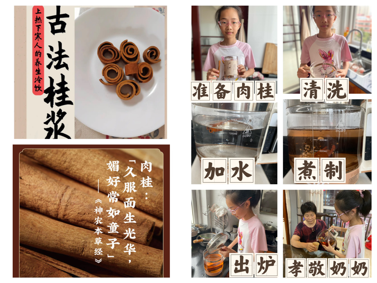 在学习了科学理念后,孩子们根据所学的中医药知识,还做起了药茶、药膳,把健康端上桌。