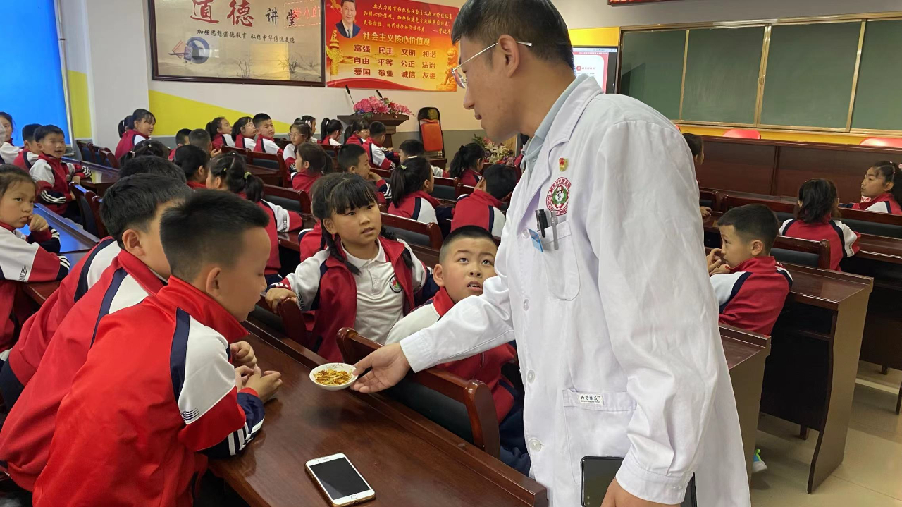 活动现场,医务人员通过生动的讲解,向学生们普及肥胖的定义、如何界定肥胖、健康体重的重要性、肥胖的危害、如何在日常生活中健康饮食等知识。结合学生们的实际情况,重点介绍了中医药在体重管理方面的独特作用,中医药的体重管理方式,注重个体差异,强调整体调理,而非简单的减重,这一理念的传授,让学生们对体重管理有了更加科学的认识,也为他们的身心健康打下了坚实的基础。同时运用常见中草药让每个孩子们现场观察山楂、枸杞、菊花等,教会同学们认识药材标本以及辨别药材。让孩子们感受到了多样的中医药文化和历史脉络,增进了同学们对中医药文化的了解与认同。