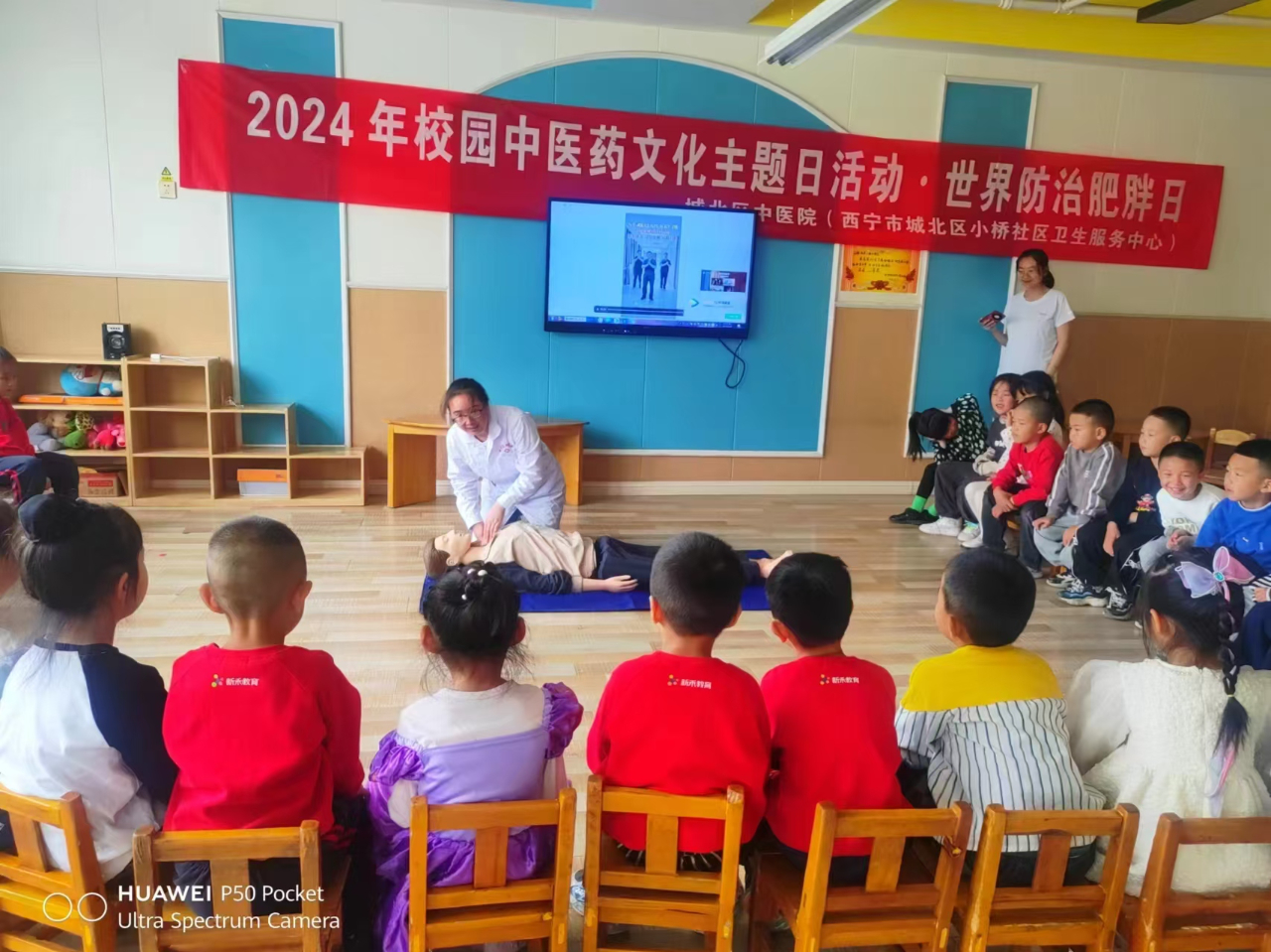 为进一步落实《“十四五”中医药文化弘扬工程实施方案》《健康中国行动中医药健康促进专项活动实施方案》,推动儿童青少年肥胖、脊柱侧弯的早防早控,加强体卫融合,充分发挥中医药在治未病和儿童生长发育方面的独特优势和重要作用,在国家中医药管理局综合司指导及《中国中医药报》社统一安排下,5月15日下午,西宁市城北区中医院“中医药文化进校园”医护团队,针对儿童青少年肥胖等健康问题,前往宁稚幼儿园开展“2024年校园中医药文化主题日活动·世界防治肥胖日”主题活动,引导儿童运用中医药的理念和方法,科学健康管理体重、养成良好生活习惯。