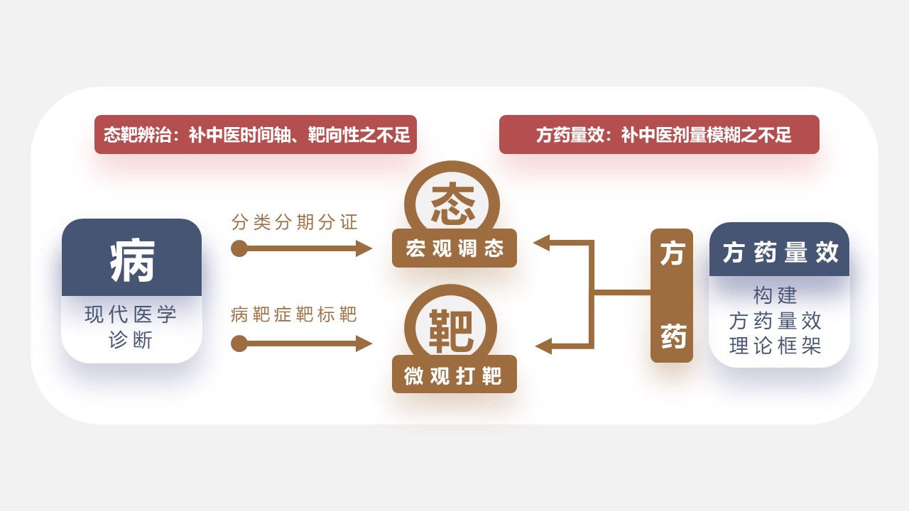 “态靶辨治”让中医大夫从过去单纯“宏观调态”的思想中解放出来,强调通过现代药理成果的临床回归为中药赋予“态靶同调性”,在避免中药西用的基础上大幅提高中医治疗的靶向性。