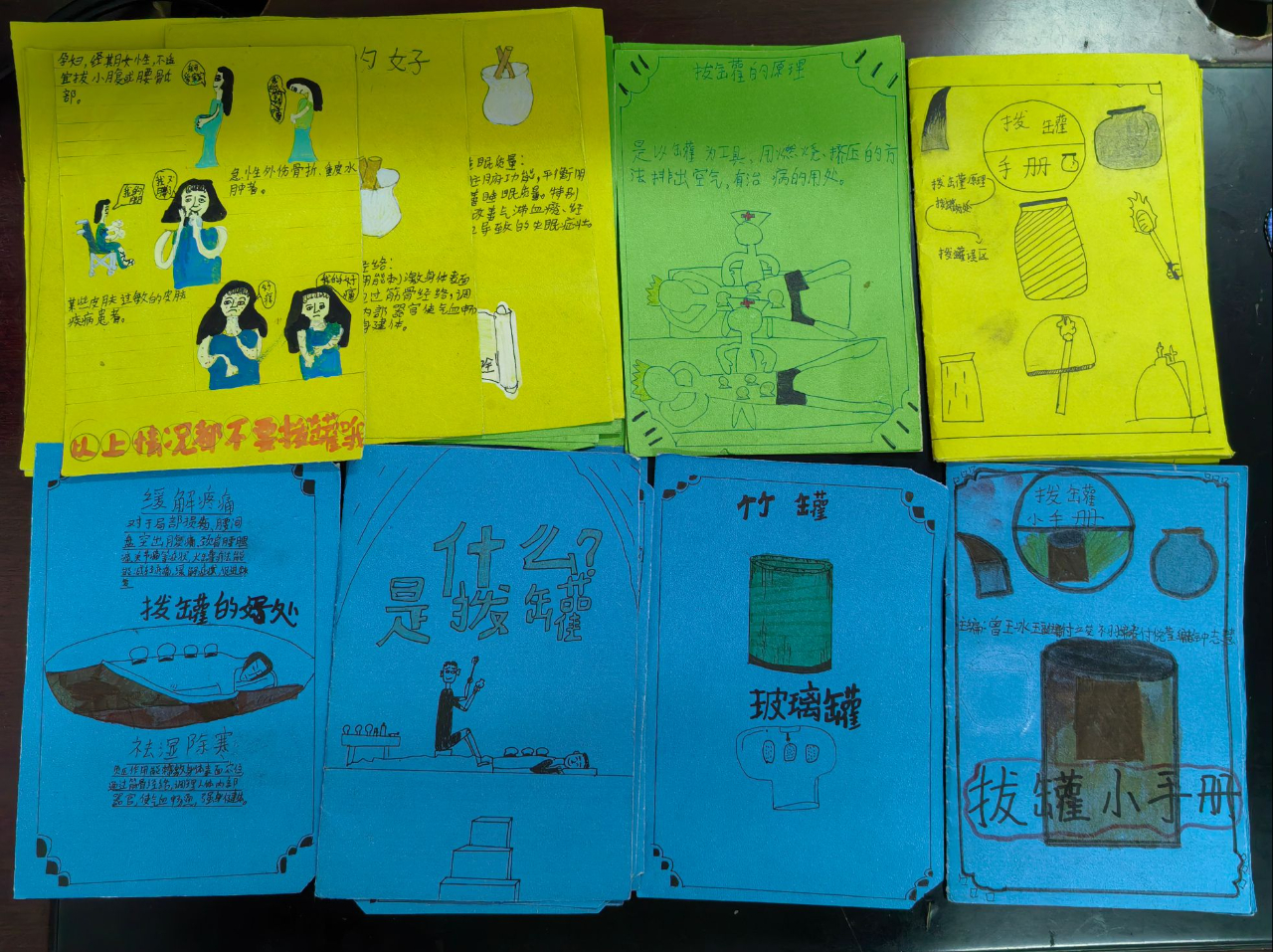 活动最后,同学们根据所学到的拔罐知识,分小组制作了一份简单的科普小手册。手册内容包括拔罐的原理、拔罐工具、误区澄清等,旨在向家人和朋友分享拔罐知识,让更多人了解并受益于这一传统中医治疗方法。