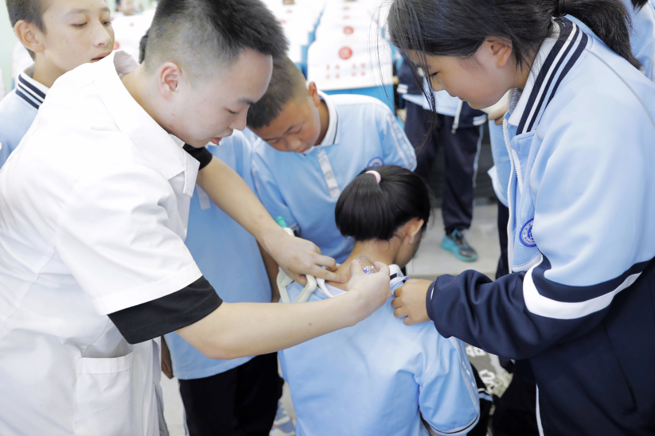 为了让同学们体验中医药的魅力,在专业医护人员的指导下,学生们尝试了拔罐疗法,并现场感受了拔罐带来的舒适与放松。医护人员耐心解答了学生们提出的每一个问题,进一步加深了他们对中医药文化的理解和认同。