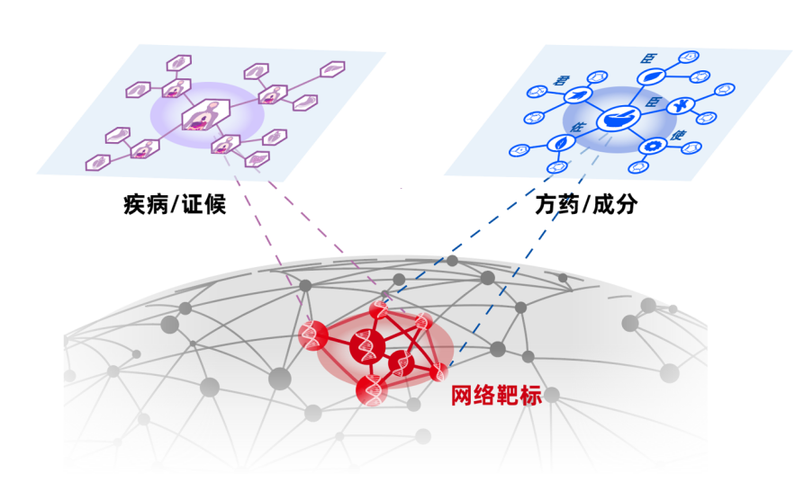 网络药理学融合系统生物学、生物信息学、网络科学等学科,从系统层次和生物网络的整体角度出发,解析药物与治疗对象之间的分子关联,揭示药物的系统性药理机制,从而指导新药研发和临床诊疗,是人工智能和大数据时代药物系统性研究的新兴原创科学。中医药网络药理学是以生物网络为基础,揭示复杂疾病、证候和方剂之间相互联系的方法学。其核心概念“网络靶标”指的是中药方剂或组合药物以病证生物分子网络及其关键模块为靶标,对疾病或证候发挥综合性系统调节作用,中药方剂的整体调控机制可以通过定量表征关键的生物分子、通路以及生物模块来阐释。因此,中医药网络药理学中的“网络”一词涵盖了中药、靶点(分子、细胞等多层次生物靶点)、证候、疾病等多种要素,充分体现了中医药“整体观”的特性。