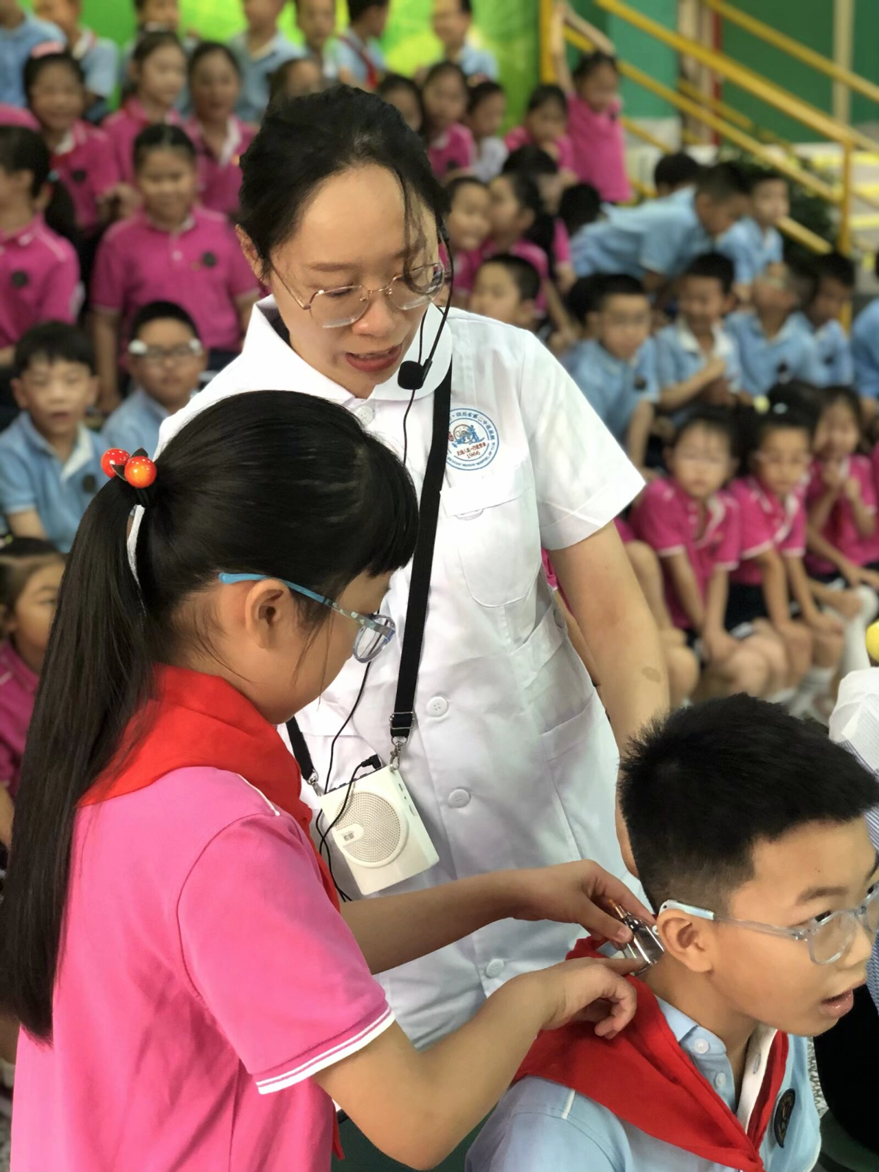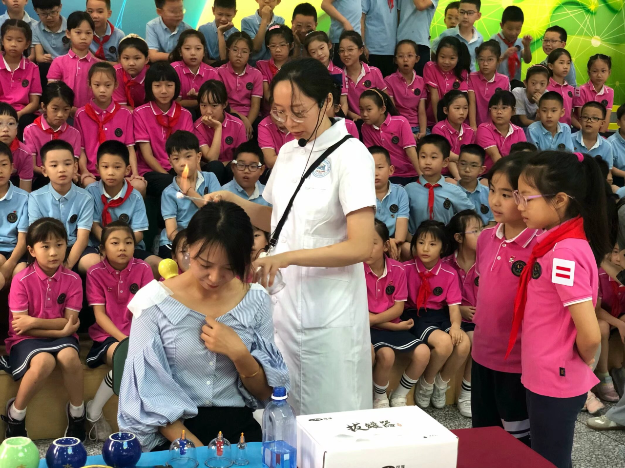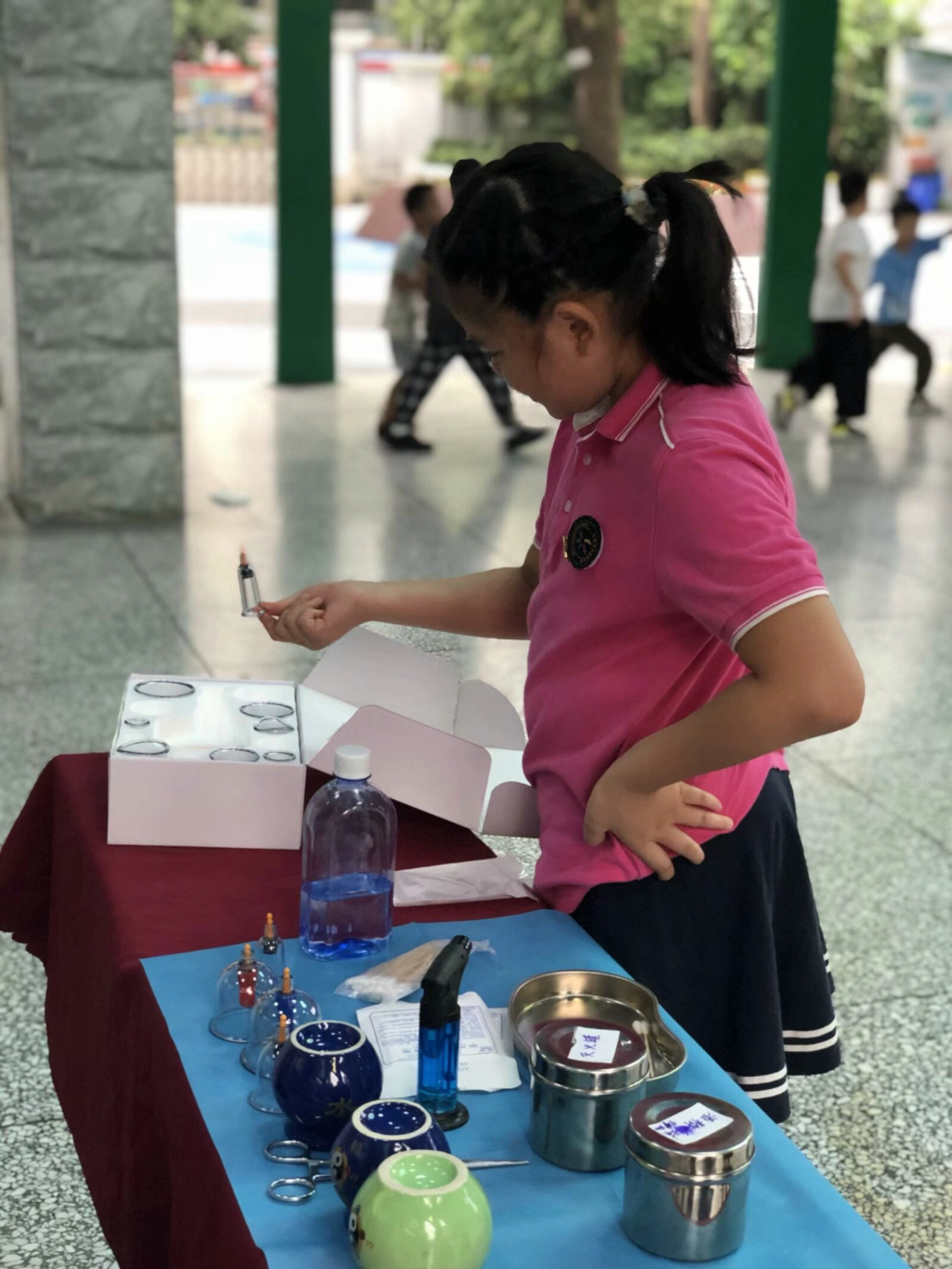 随后,杜氏骨伤科和皮肤科的罗护士现场为老师和学生们演示选罐、选穴、拔罐、起罐等步骤,讲解后邀请老师和学生体验拔罐操作流程。孩子们纷纷举手体验使用真空拔罐器拔罐疗法,在实际操作中,孩子们不仅学会了操作技能,也体会到了中医药文化的博大精深。医生还为孩子们演示火罐疗法,孩子们被神奇的一幕所吸引,对拔罐这种传统疗法有了更加深厚的兴趣。