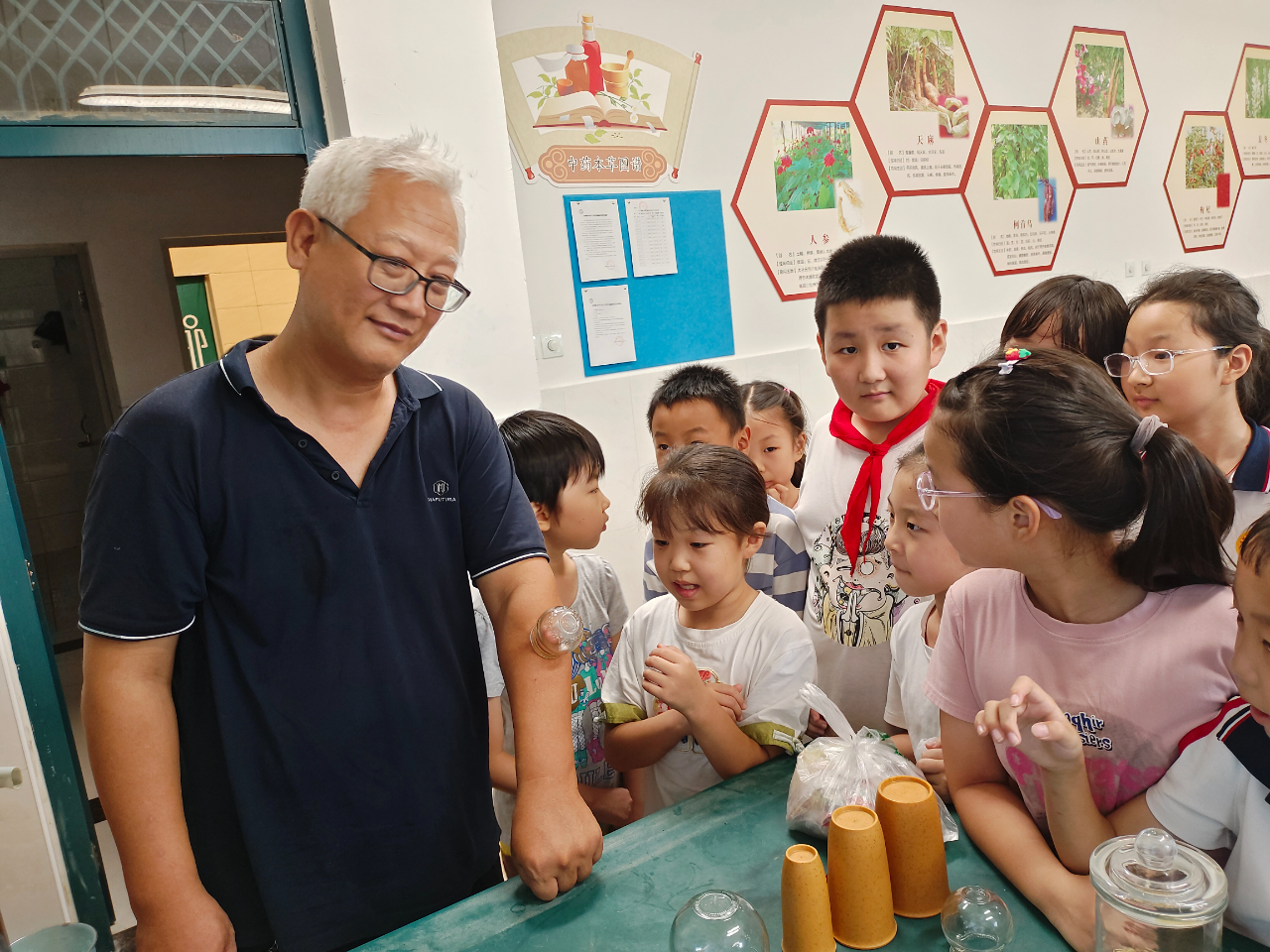 正值开学之际,学生们对于奥运会记忆犹新。我国健儿为国争光,奋勇争先,特别是游泳运动员,整天在水中训练,湿气很重,拔火罐可以去除湿气,强健身体。为了更好了解拔罐好处和操作方法,山东省淄博市周村区正阳路小学特别邀请了淄博市中医医院专家为中医文化社团成员讲解演示拔火罐。学校各班通过体育课、班队会、道德与法治课、科学课、劳动课、综合实践课进行了一堂小小罐子蕴含中医智慧的科普讲座。社团辅导员闫贻民老师也通过家长群分享中国中医药报的课件视频,让家长和孩子共同了解拔火罐的原理,共同增长了对中医药文化的了解,也对祖国中医药文化的博大精深有了更多认识。通过本次活动,学校也联系辐射两个校区,以及淄博周边兄弟学校通过科学课体育课班队会等方式普及中医文化,为小学健康教育,为中医文化科普做出了贡献。