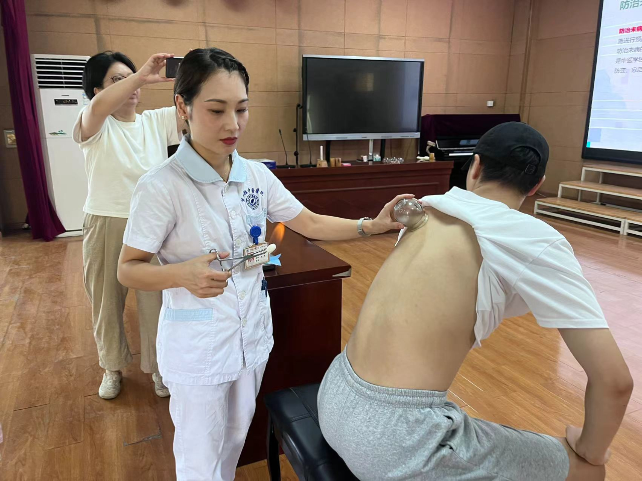 活动伊始,专家讲师通过讲解,向在场观众详细介绍了拔罐的起源、原理、适应症与禁忌症等相关知识。随后,活动进入了互动问答和知识竞答环节。讲师提出了一系列与拔罐及中医药文化相关的问题。紧接着,讲师详细介绍了每种工具的特点和使用方法,并邀请观众近距离观看和体验。在讲师的指导下,不少同学亲身体验了拔罐的过程,感受到了拔罐带来的舒适与放松。