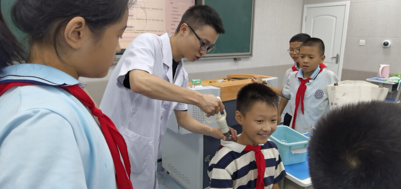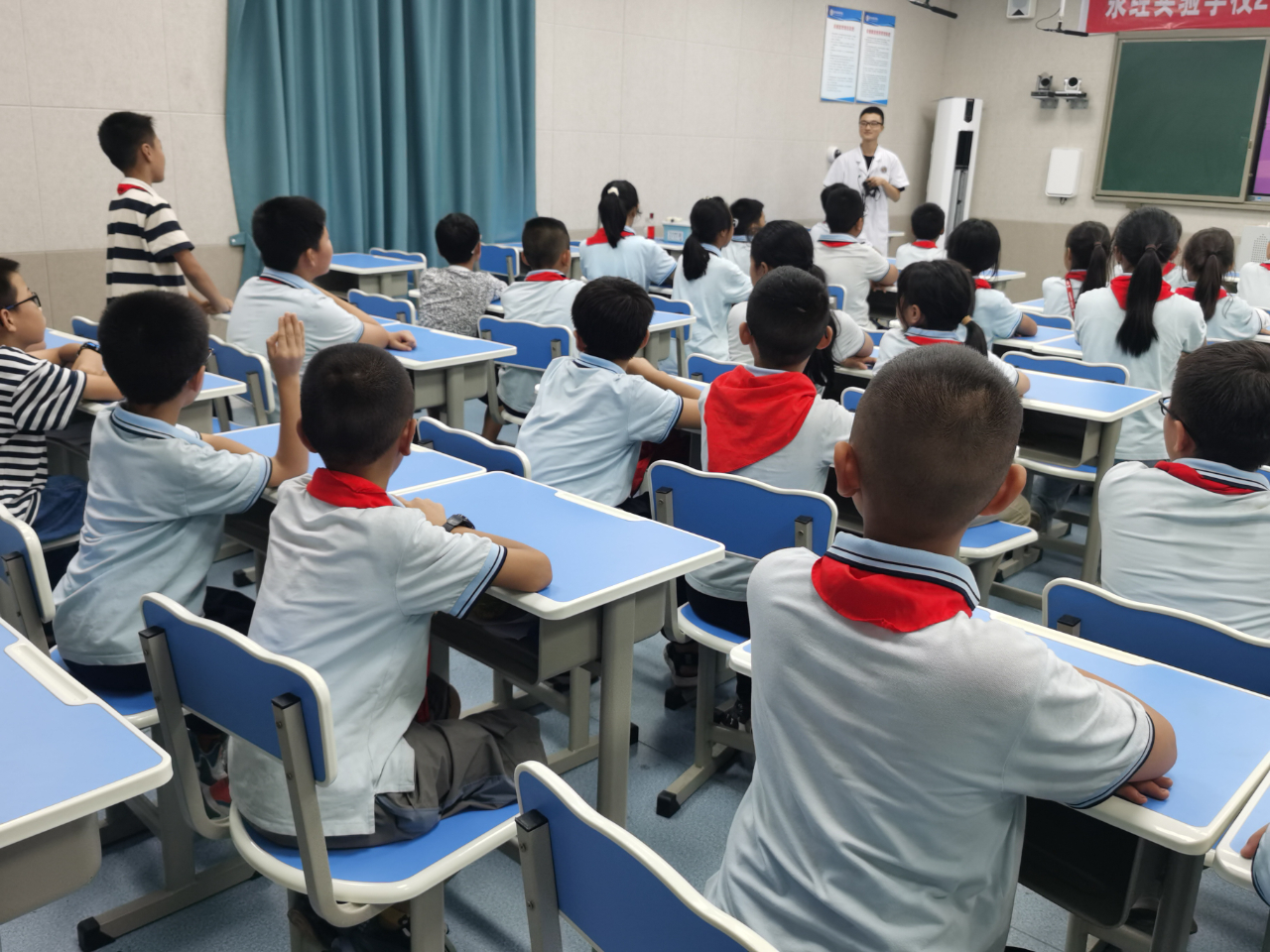 活动中,康复治疗师杨树森介绍拔罐的起源、历史发展、种类,以及原理、功效等,指导同学们在纸上绘制出拔罐、走罐的位置图,通过讲故事、看视频,在课堂上启发学生不断思考,演示拔罐操作流程,包括选罐、选穴、拔罐、起罐等步骤,并指导同学们根据今天所学到的拔罐及经络穴位知识,使用真空拔罐器体验拔罐疗法,杨树森富有亲和力的语言和巧妙的引导,充分调动了小学生的好奇心,个个都举着小手争先恐后分享自己的拔罐体验和认识。