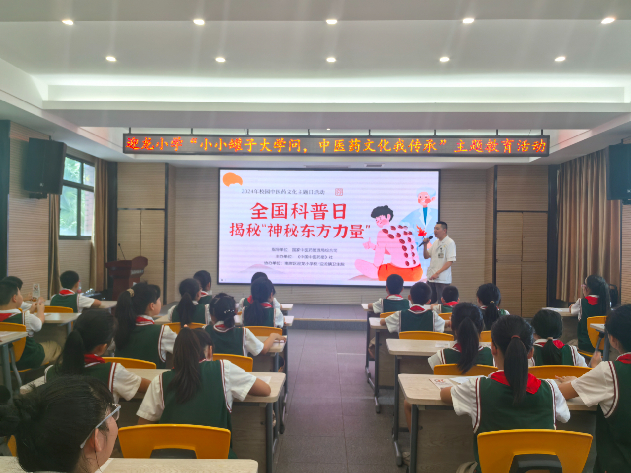 中医药文化源远流长,凝聚着中华民族几千年的健康理念与养生经验。为了进一步弘扬中华民族传统文化,传播中医药文化知识,大力普及健康知识,让更多的学生感受中医药文化的魅力,促进中医药文化的传承与创新发展。迎龙小学是重庆市中医药进校园示范校,2024年9月29日下午,迎龙小学与迎龙镇社区医院携手开展了“小小罐子大学问,中医文化我传承”主题教育活动。此次活动邀请了迎龙镇卫生院中医科主任赖建良走进校园,为同学们带来了一场精彩纷呈的中医药文化盛宴。