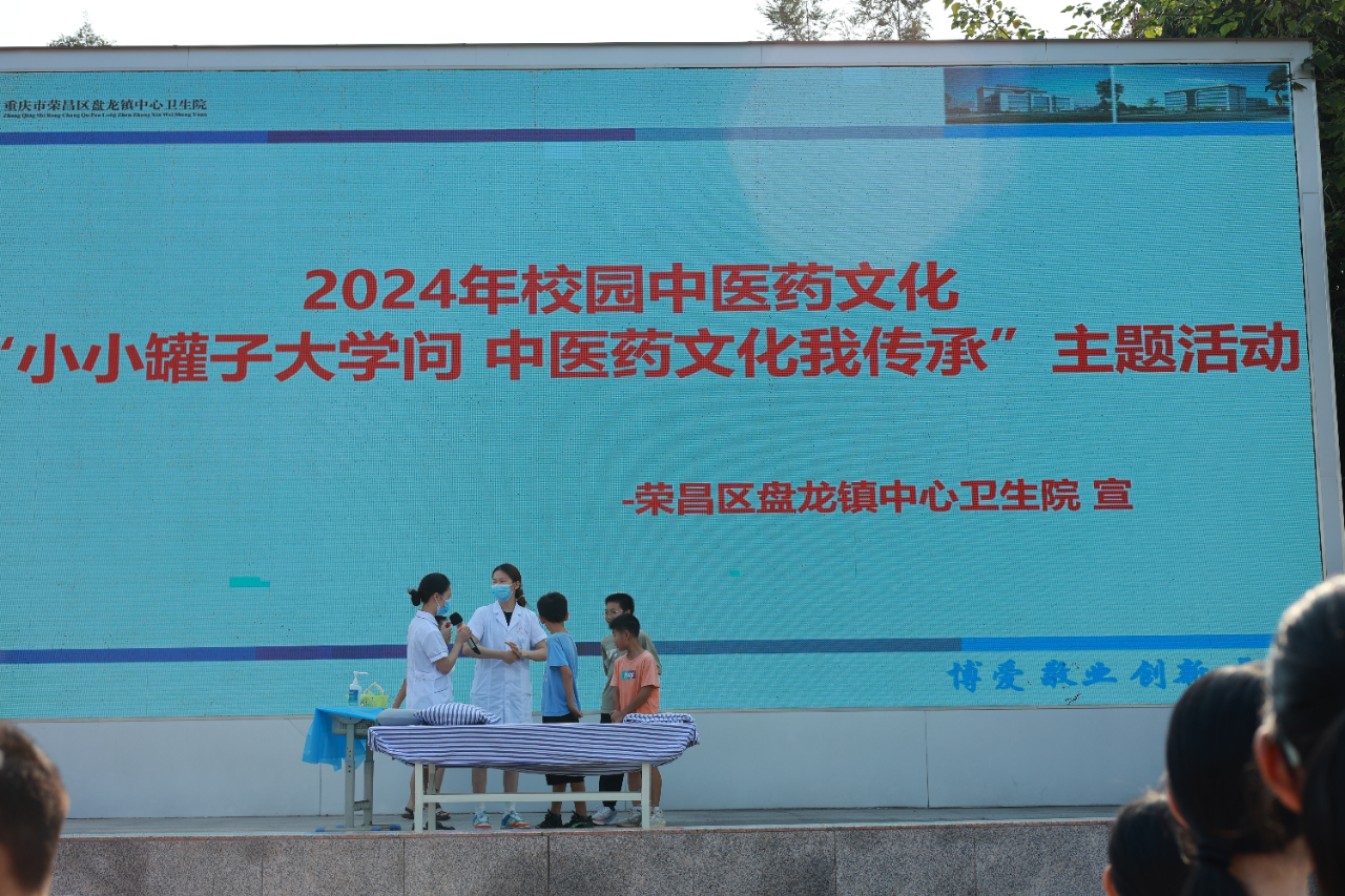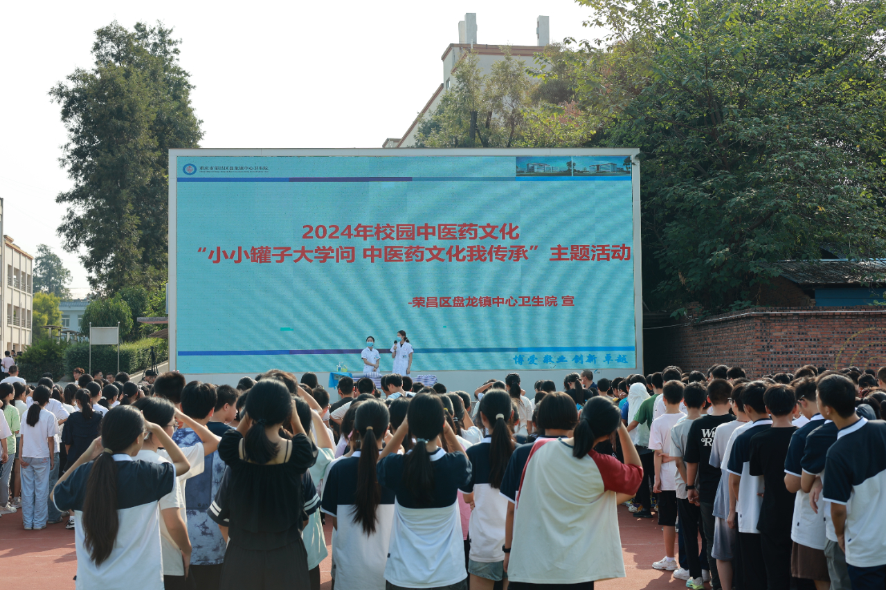 为让更多的青少年感受中医药文化魅力,不断增强青少年文化自信和中医药健康文化素养水平,促进中医药文化传承创新发展,扩大中医药文化进校园社会参与度,2024年9月27日上午,荣昌区盘龙镇中心卫生院特组织中医科相关医务人员在荣昌区盘龙镇初级中学进行了以“小小罐子大学问 中医药文化我传承”为主题的2024年校园中医药文化活动。