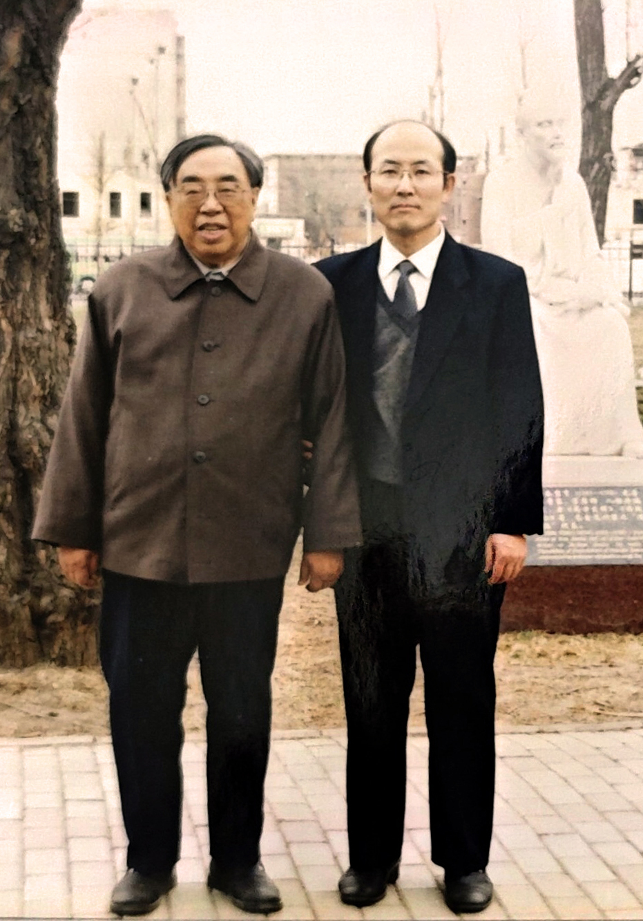 2004年,姜德友(右)和其博士生导师、国医大师张琪在黑龙江中医药大学校内合影。