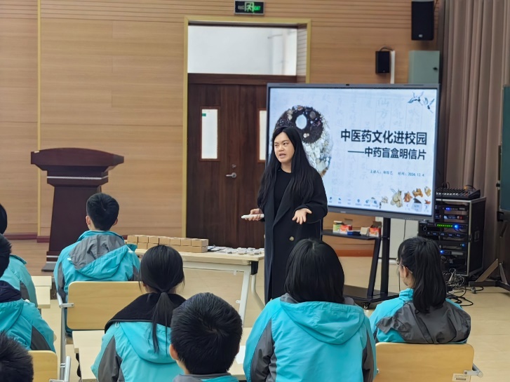 西南大学银翔实验中学教师郑综艺和重庆市合川区中西医结合医院医生周月月带来“双师课堂”中医药文化特色专题课程《盲盒明信》,把盲盒文化、书信文化与中医药文化进课堂融合,深受师生、家长喜爱,获得领导、专家好评。重庆子瞻自然教育中心主任、中国林学会自然教育专委会委员肖昱为学生代表颁发中医药文化特别奖。课程结束后自然教育沙龙中,重庆市教育学会生态文明与环境教育专委会秘书长罗键介绍中医药文化进校园十年来的实践探索经验与成效;重庆市中医药学会推拿专委会委员周月月医生向现场嘉宾介绍中医药文化和日常养生法,并对学校宣传中医药文化提出建议;重庆市渝中区自然介公益发展中心理事长陈竹以自然笔记大赛为例,介绍与西南大学附中合作开展的自然教育中优秀传统文化的传承,提出做好自然笔记的关键词是创造力、思维力、沟通力和保护力,向大家阐明自然教育是一种探究性和服务性的学习;重庆陆海国际传播公益基金会国际项目主管李南欣向大家介绍“鹰飞之城”中美青少年鸟类友好城市创想大赛,希望优秀传统文化实现文明互鉴;重庆市野生动植物保护协会副会长、重庆动物学会观鸟专委会负责人危骞指导学校如何开展观鸟活动。西南大学银翔实验中学师生还向嘉宾们赠送自制的“盲盒明信”等中医药文创产品。