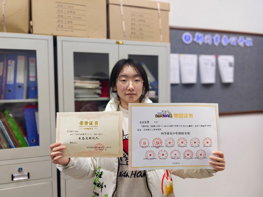 三是因为中医药文化进校园和生物多样性探究中的突出贡献,8名学生荣膺钱易院士颁发的第八届钱易环境奖中学生奖,1名学生荣获施一公院士颁发的全国“中学生英才计划”生物学科论坛优秀成果;10名学生的《杂草变成宝——传统中草药节节草在现代口罩抑菌技术中的应用探索》荣获第40届重庆市青少年科技创新大赛5金1银4铜,2项晋级全国总决赛;6名学生的《溪畔小猎手——黑山谷发现重庆市蛙类新纪录中华湍蛙》等作品,荣获全国青少年自然笔记征集活动优秀作品,232名学生的《惊情130年——重庆石柱县中益乡惊现合江臭蛙》等作品,荣获第八届重庆市梦想课堂·自然笔记大赛特一二三等奖、优秀奖及入围奖。