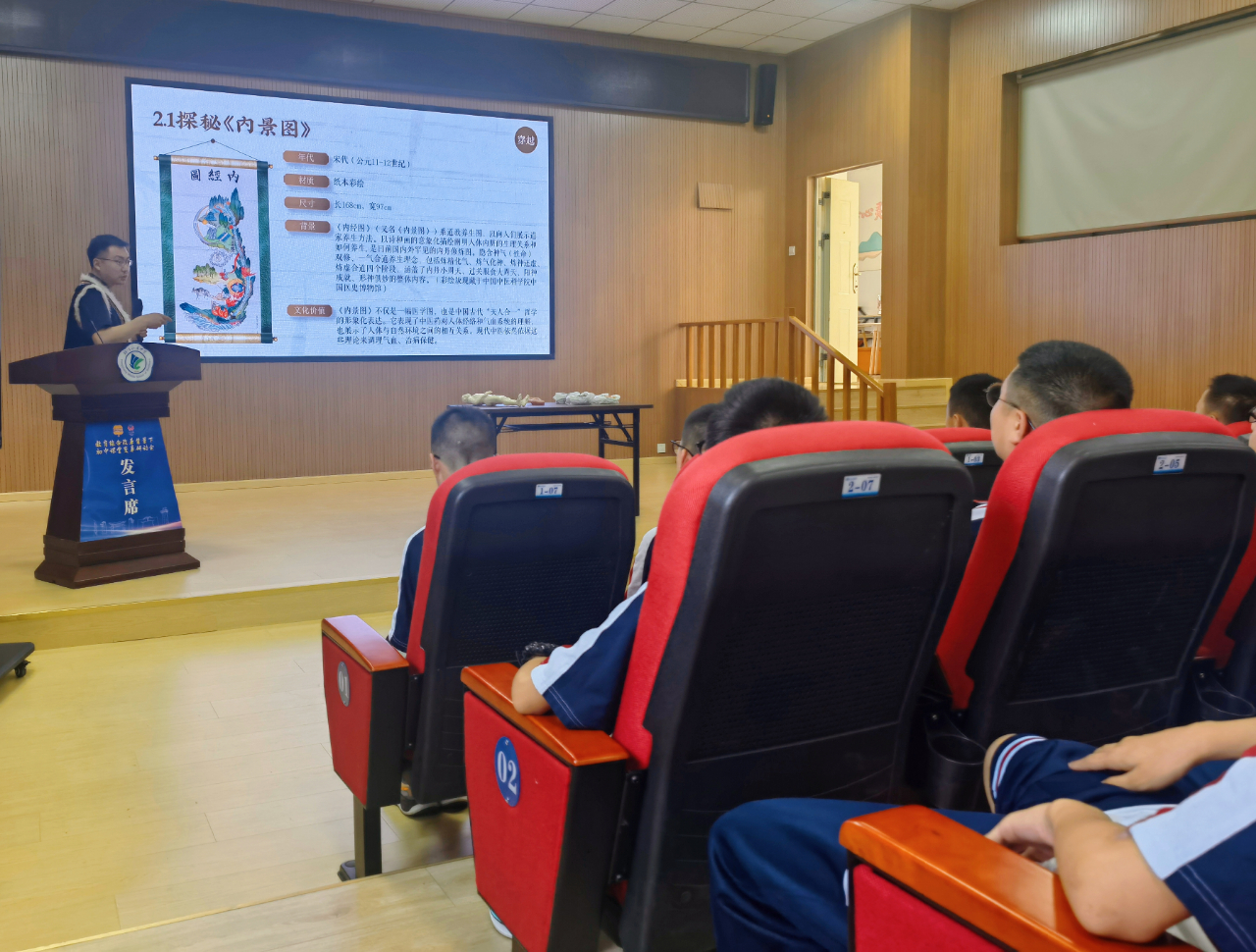 接着,学生们开启了“穿越:开启中医药时光之旅”。探秘的第二个特别中医药“宝物”是藏于中国医史博物馆的《内景图》。学生们在互动讨论中积极思考《内景图》里藏着的古人智慧和健康奥秘,之后观看专家录制的讲解视频,进一步解锁了其中蕴含的中医药知识,仿佛穿越时空与古人对话,感受着中医药文化的博大精深。