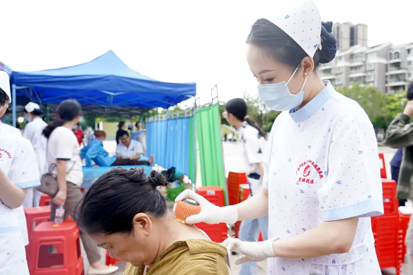 壮瑶医药特色技法也是这场文化盛宴的重磅级菜品。在广西玉林活动现场,12种壮瑶医“名技法”轮番上阵。壮医药物竹罐、壮医药线点灸疗法等非遗技艺展示充满少数民族医药特色,医护人员在展示操作的同时也为民众科普这些非遗技艺的传承脉络、操作方法、主要功效等。壮瑶医滚蛋疗法、壮医经筋疗法、药熨疗法、瑶医刮药疗法等技艺轮番上阵,围观体验的民众络绎不绝。