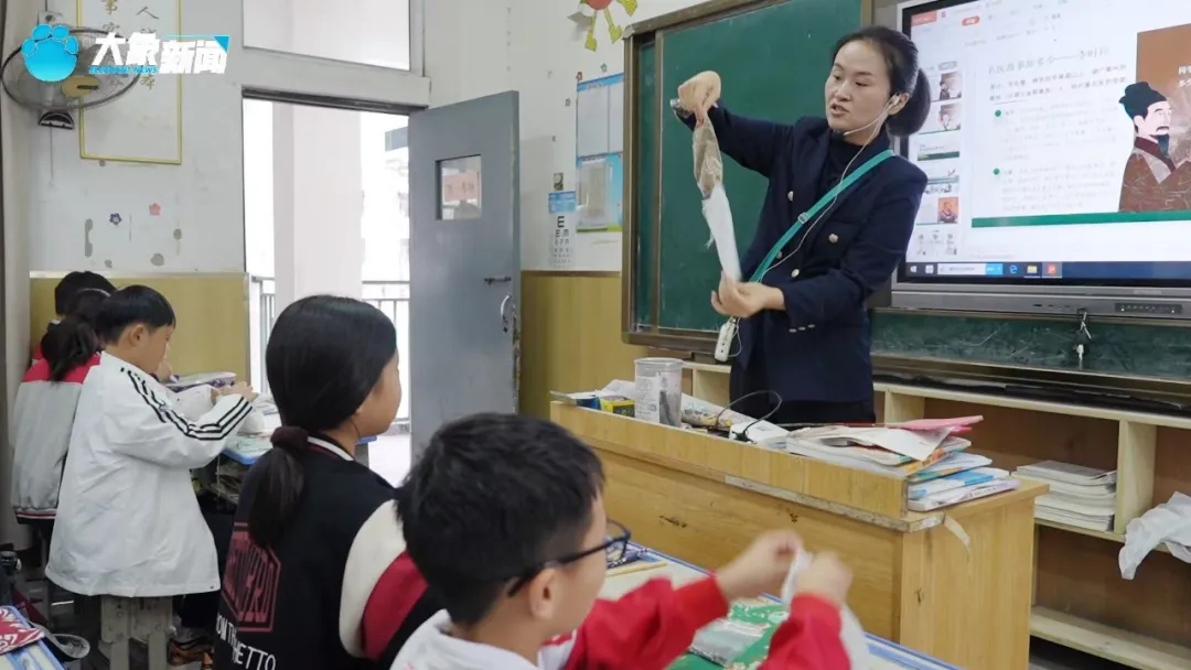 课堂瞬间变成了欢乐的实践工坊,孩子们一边动手制作,一边体验中医外治法的智慧。五年级学生张正尧兴奋地试用刚做好的养生锤:“原来中医这么有趣!我学到了名医那种勇于创新、敢于尝试的精神!”