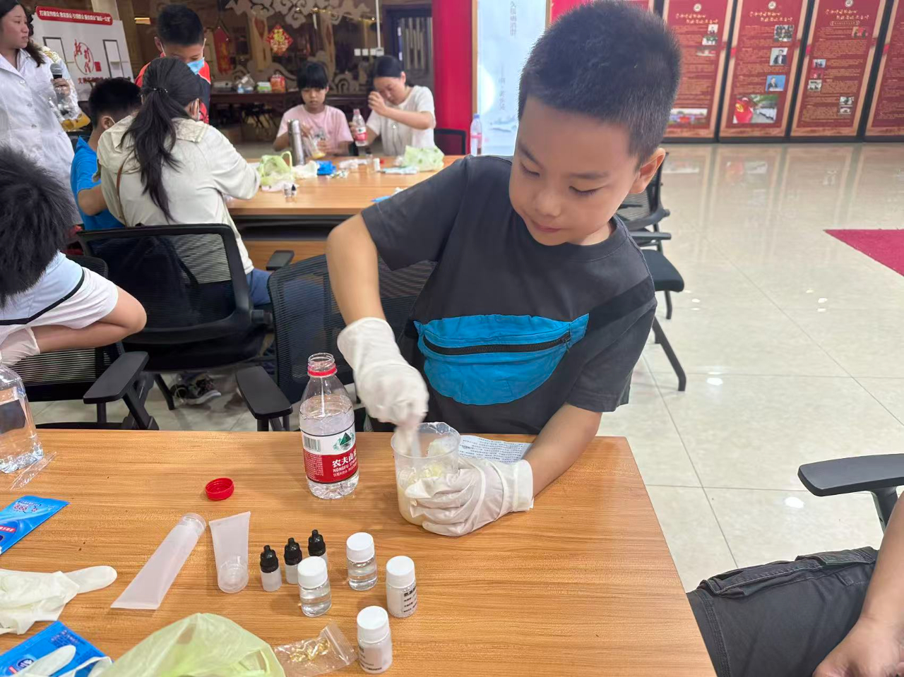 秋季来临,天气转凉气候干燥。家长们也纷纷参与进来,与孩子们一起进行制作金盏菊护手霜的活动。尽管制作过程稍微复杂,但大家的热情极为高涨,在欢声笑语中顺利做出了一支支精美的成品。工作人员纷纷鼓励孩子们,可将护手霜作为礼物送给家人或朋友,让这份承载着爱的礼物成为传递亲情和友情的纽带。